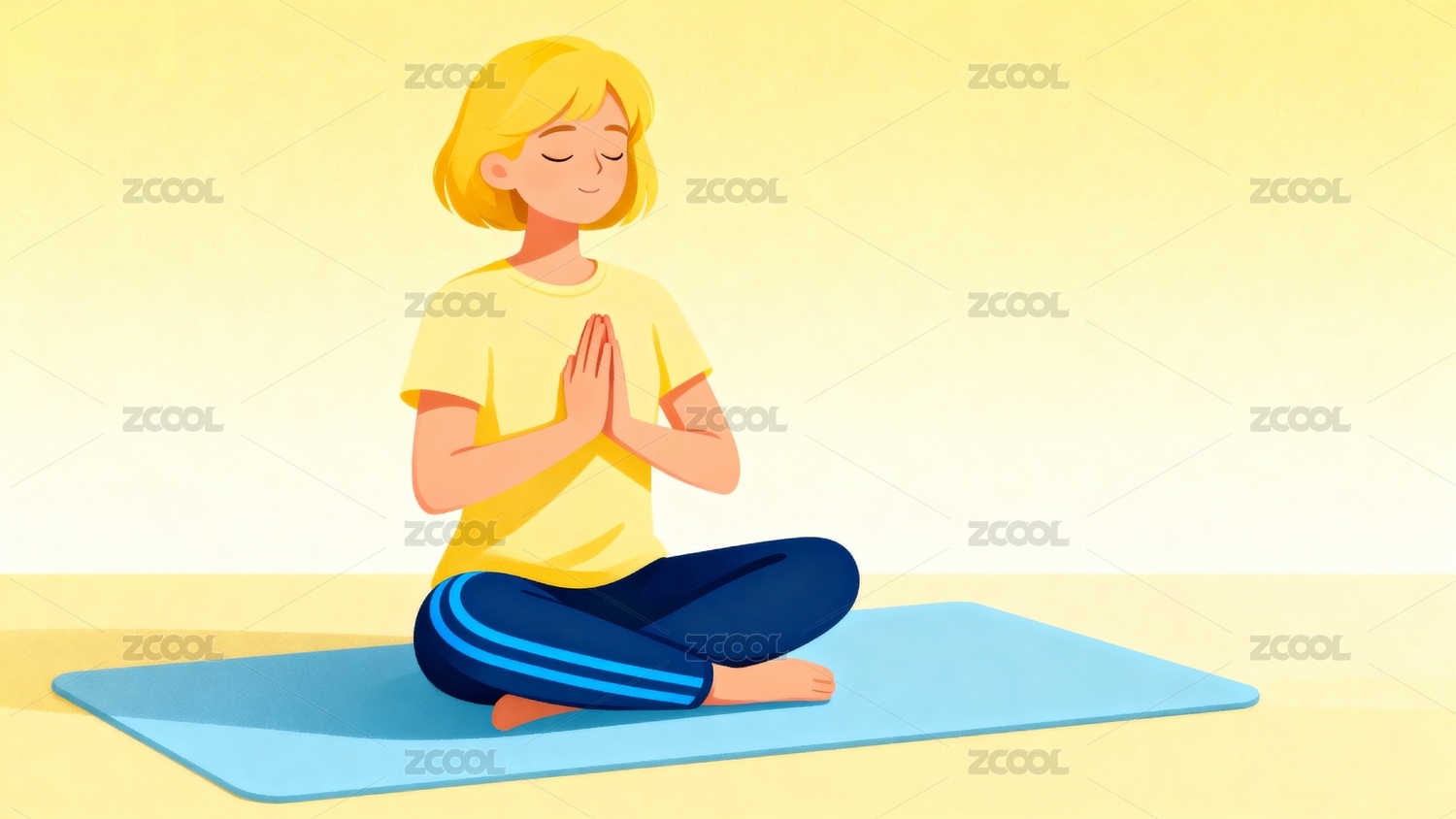可爱瑜伽打坐小姐姐卡通插画