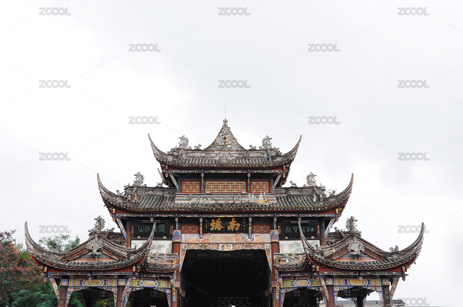 四川崇州市街子古镇瑞龙桥白昼晴天