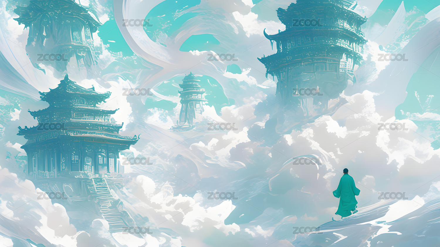 手绘,原画,插画,游戏,建筑,古建筑,灯笼,红灯笼,小人,侠客