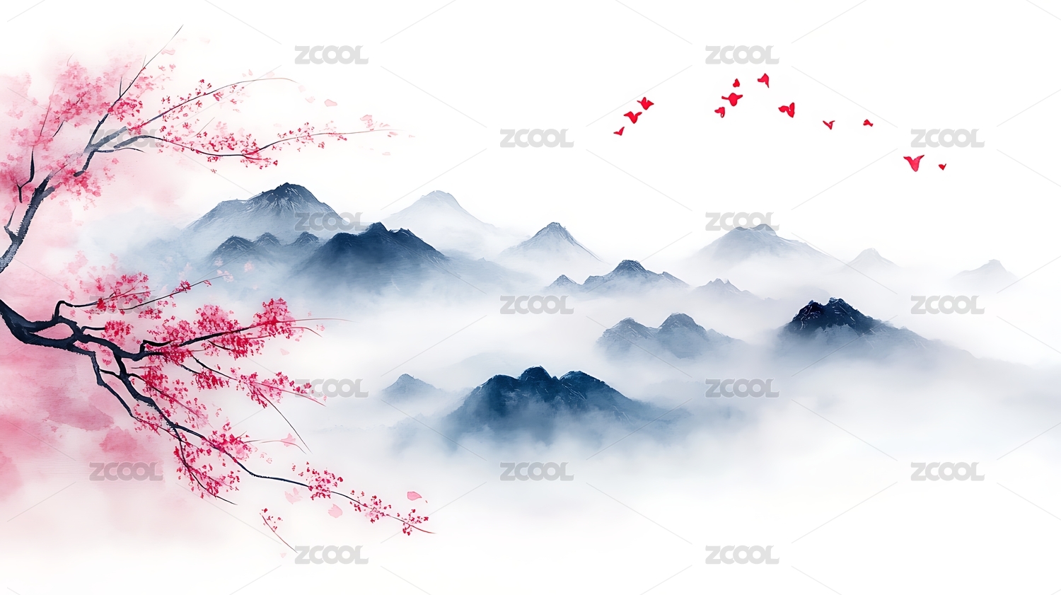 中国风,梅花,背景,插画,手绘,中式,水墨,底纹,复古,红色