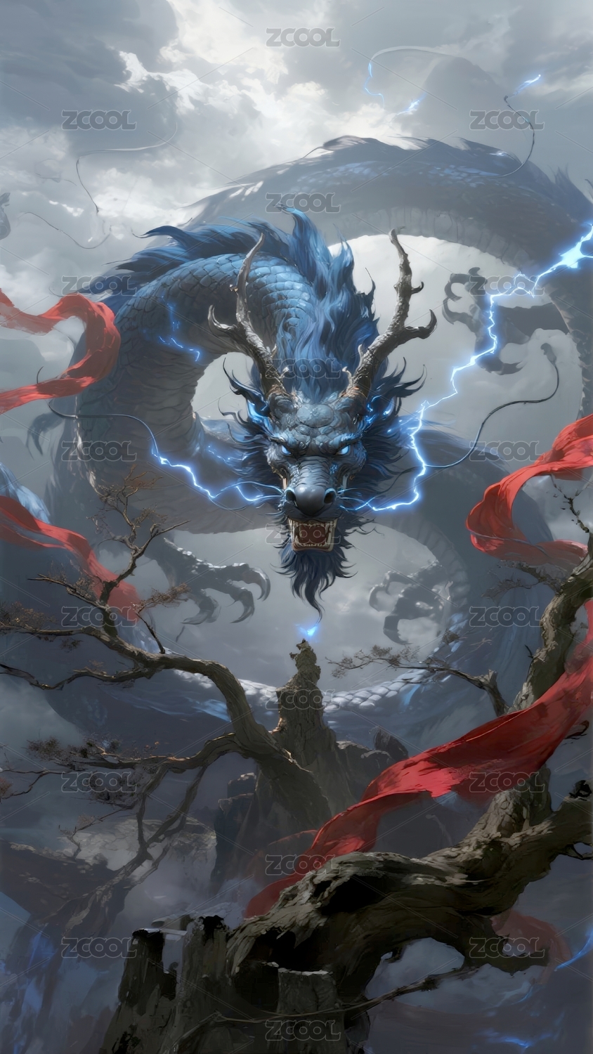 国画,水墨画,创意,鹿角,权杖,法杖,山神,腹肌