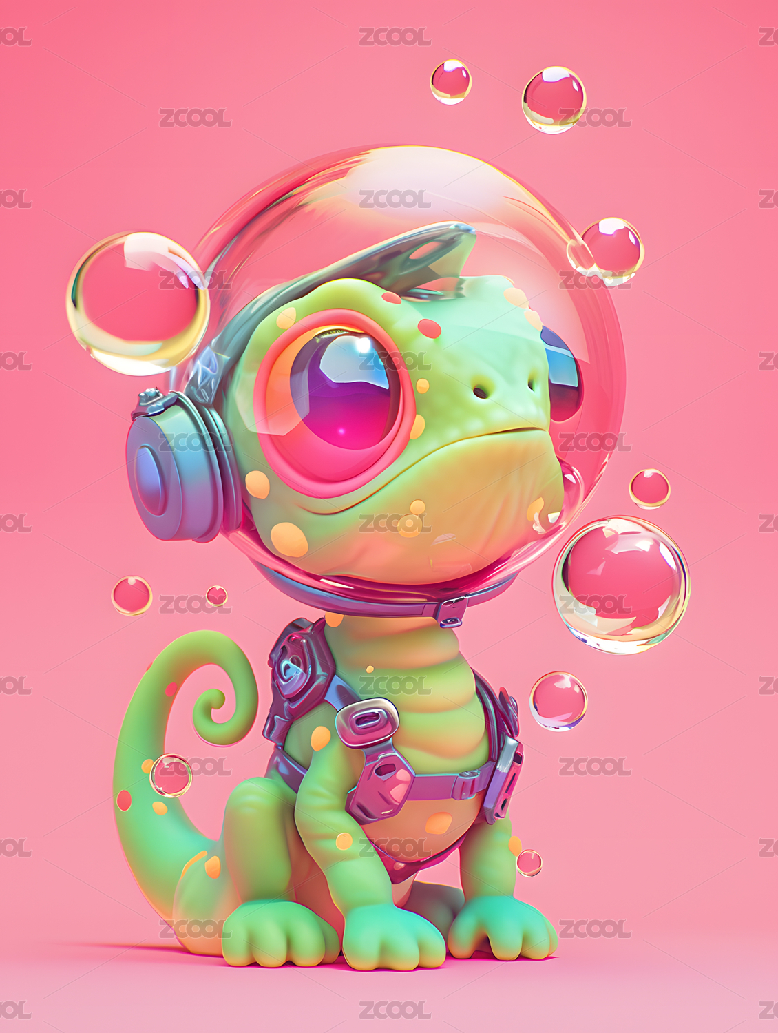 拟人穿彩色宇航服的儿童动物3D卡通插画