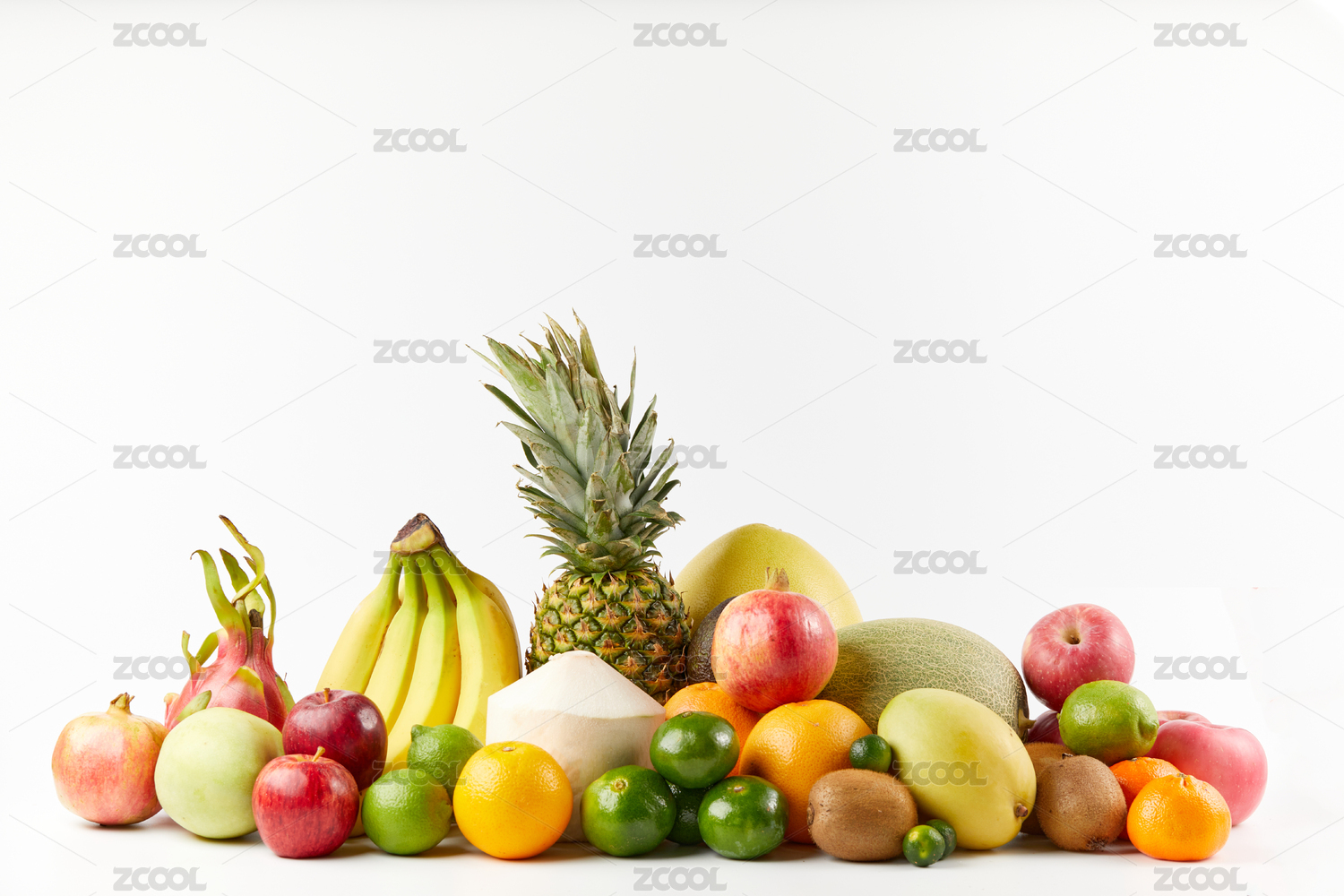种类繁多的水果集合,在白色背景