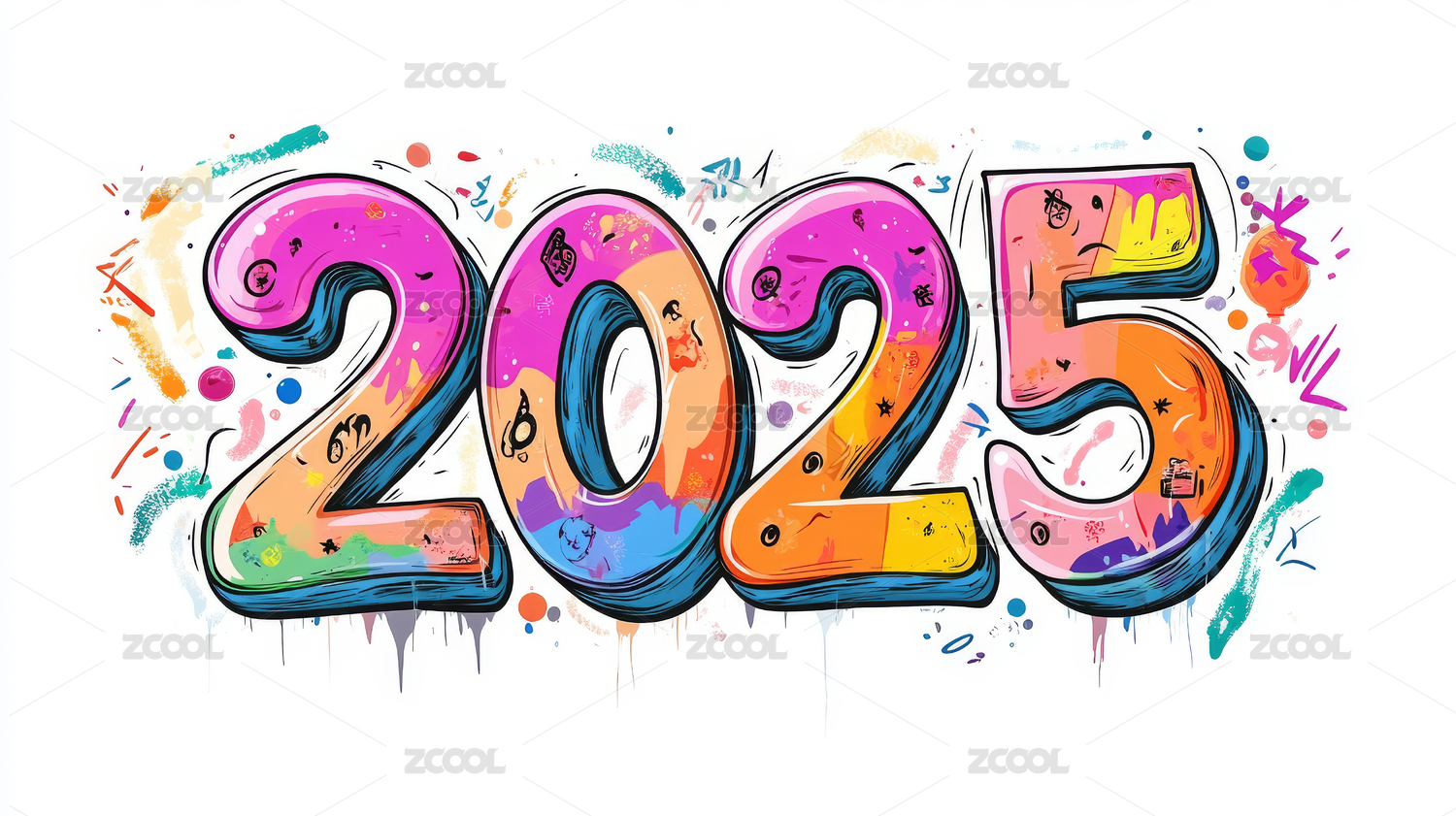 卡通,彩色,艺术字,2025,字体,设计,插画