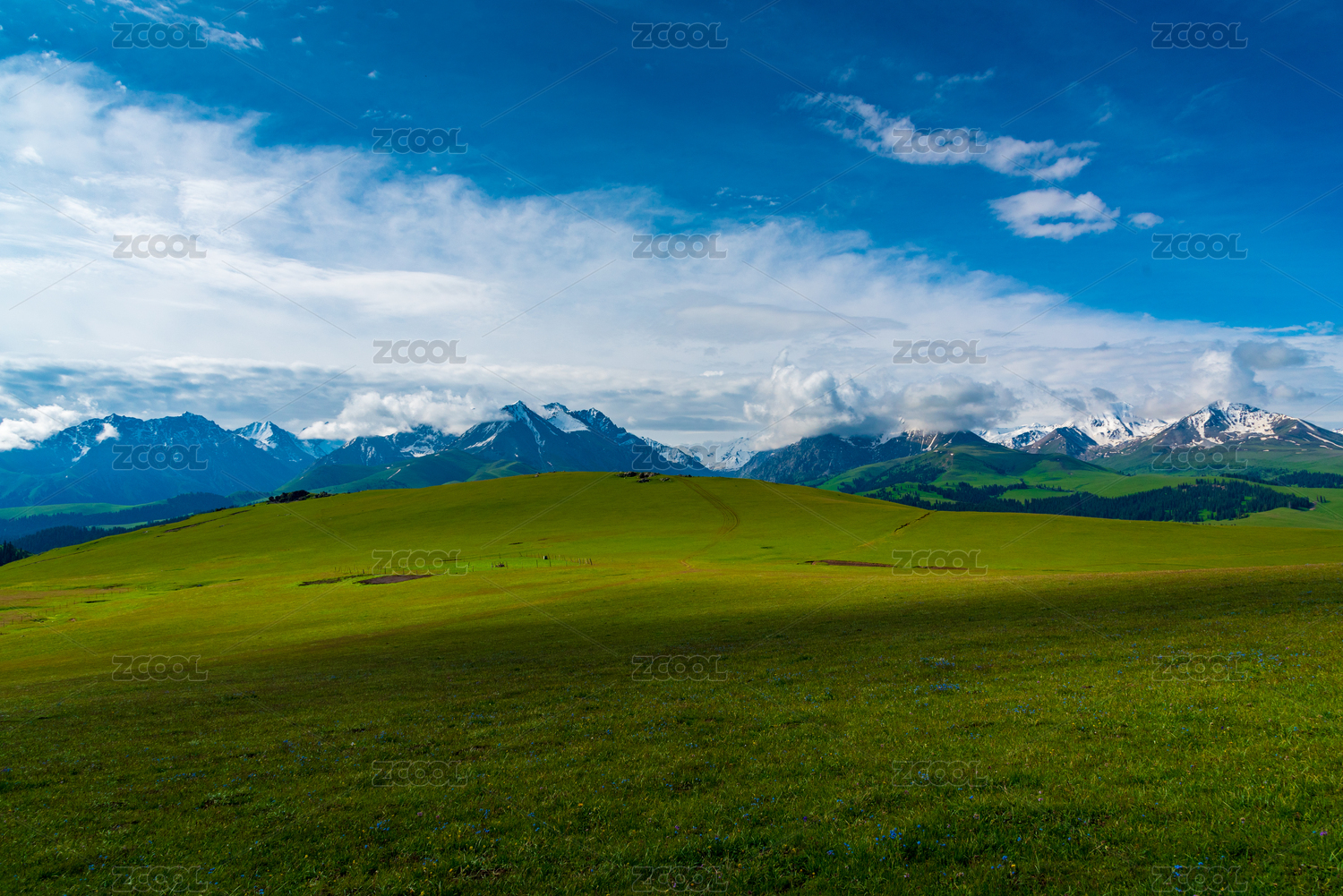 中国新疆伊犁那拉提的雪山草地森林与牧场