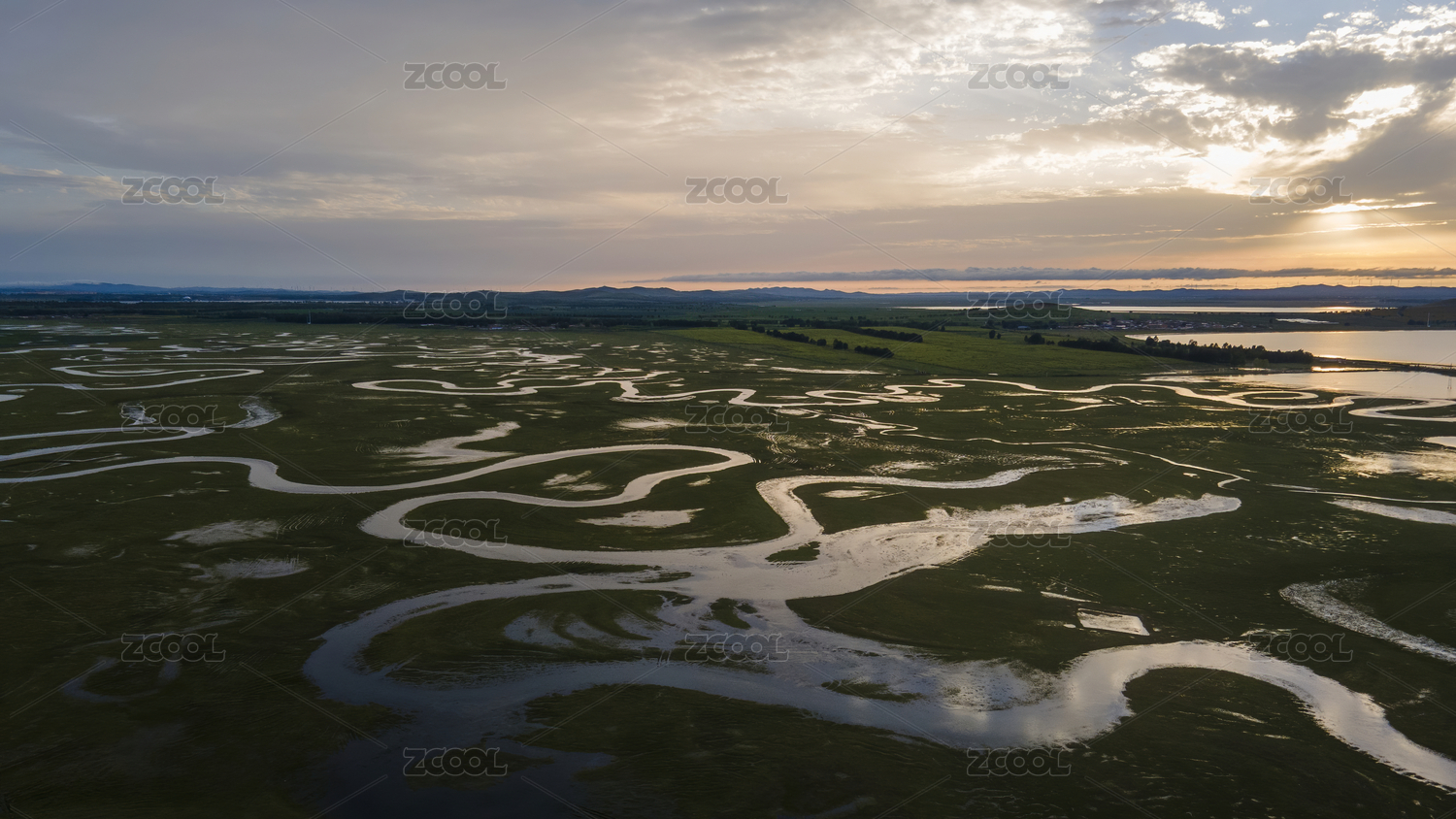 河北,滦河神韵景区,九曲十八弯,日落,草原河流