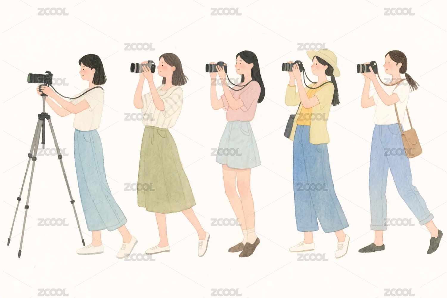 插画,女人,女孩,年轻,女生,卡通,人物,线条,设计,素材