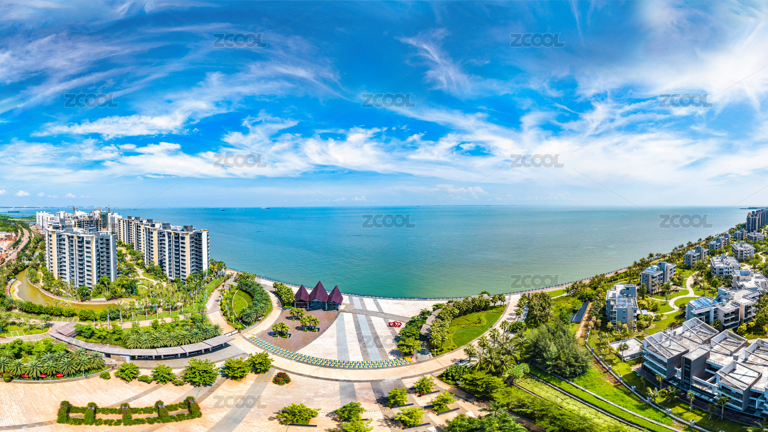 中国海南省海口市海甸岛美丽沙滨海城市公园航拍
