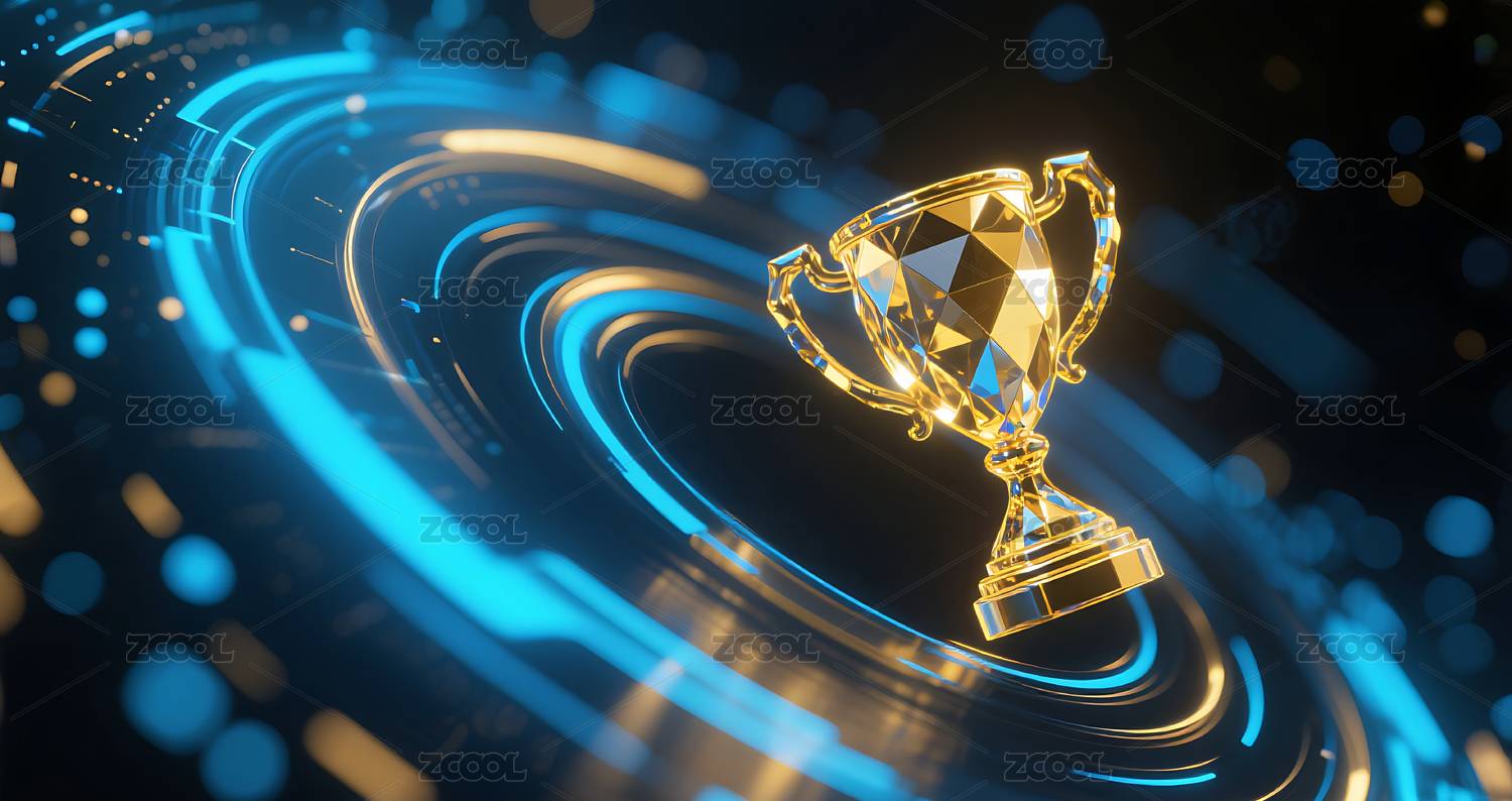 3D荣誉尊贵的金色奖杯与金色稻穗组合