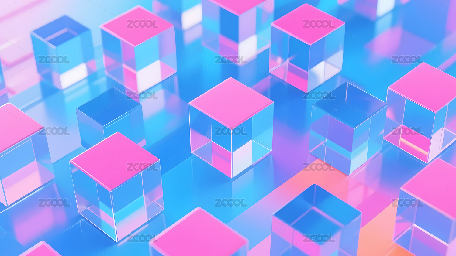 粉蓝立方体与渐变背景