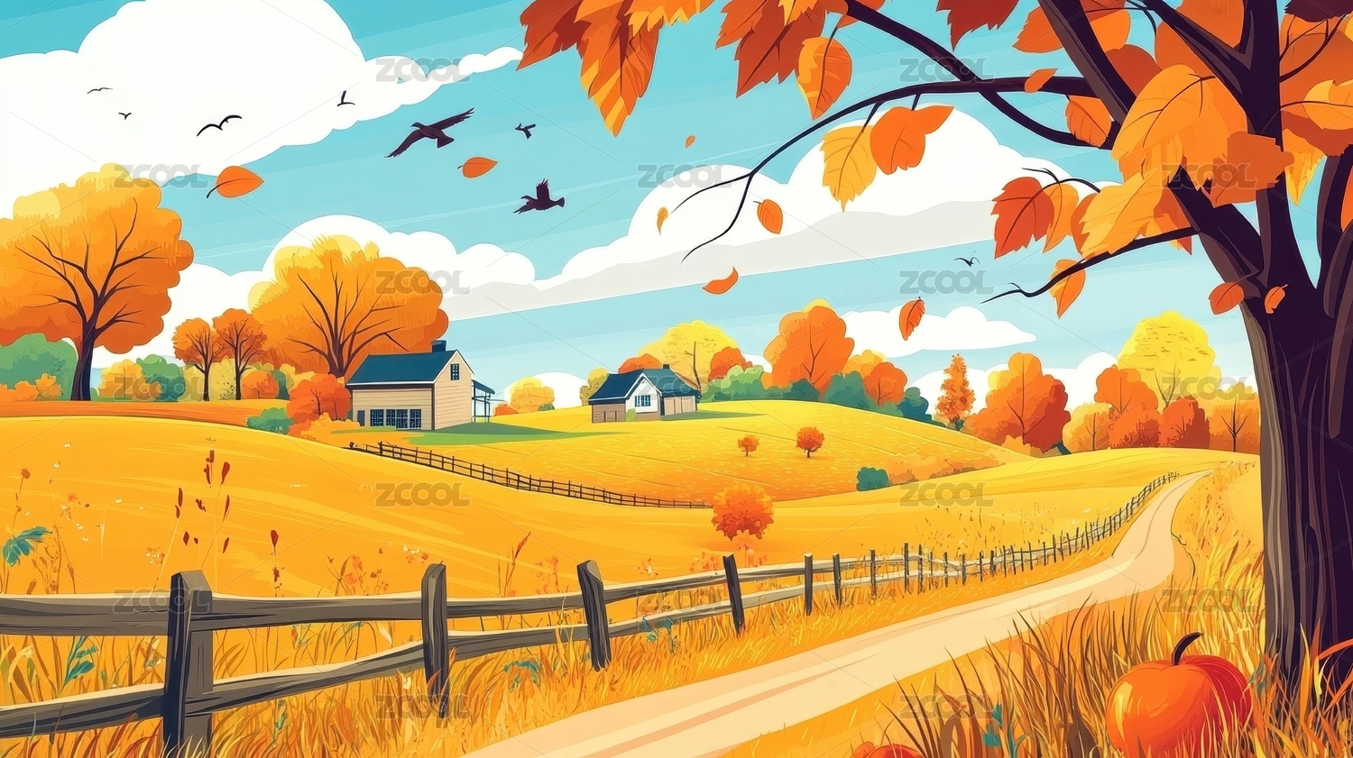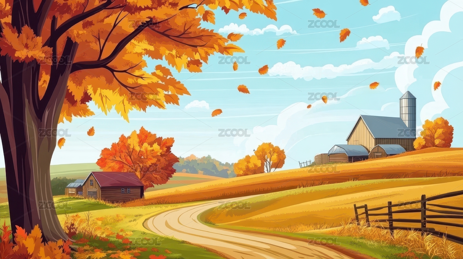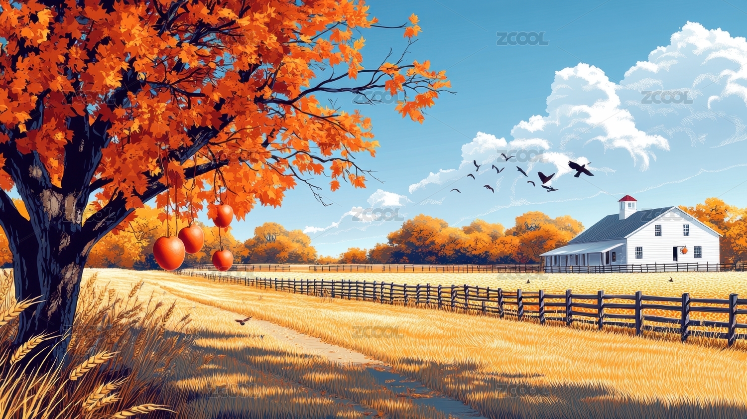 秋天乡间田野插图
