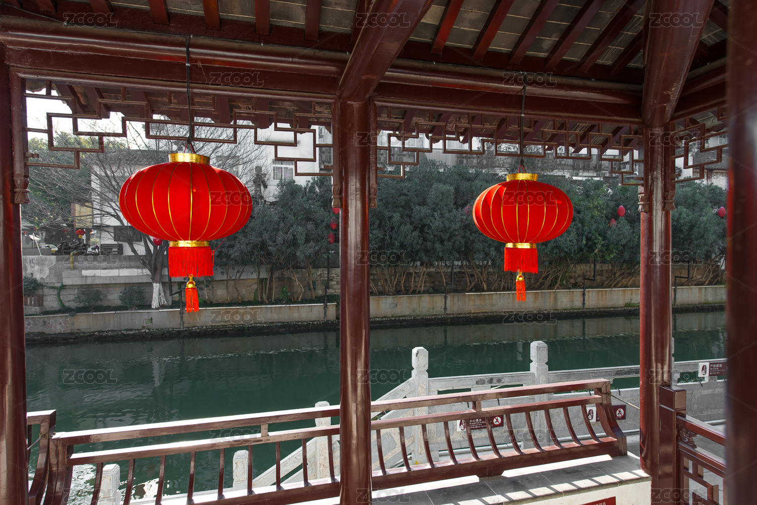 廊亭红灯笼园林景观,中国江苏省南京市甘熙宅第