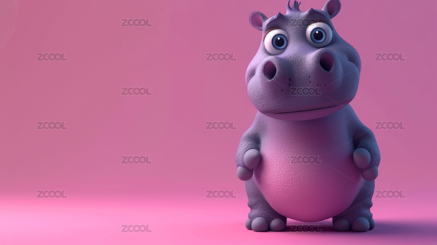 卡通,河马,简笔画,3D,立体,野生,动物,热带,植物,犀牛