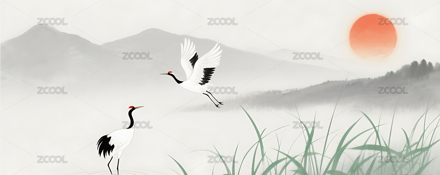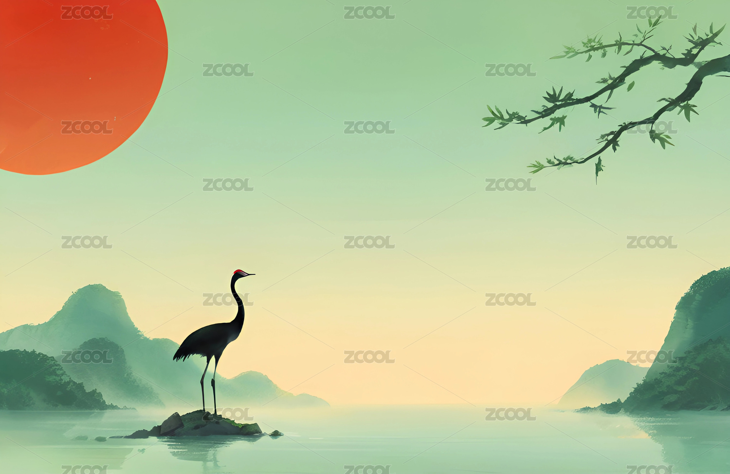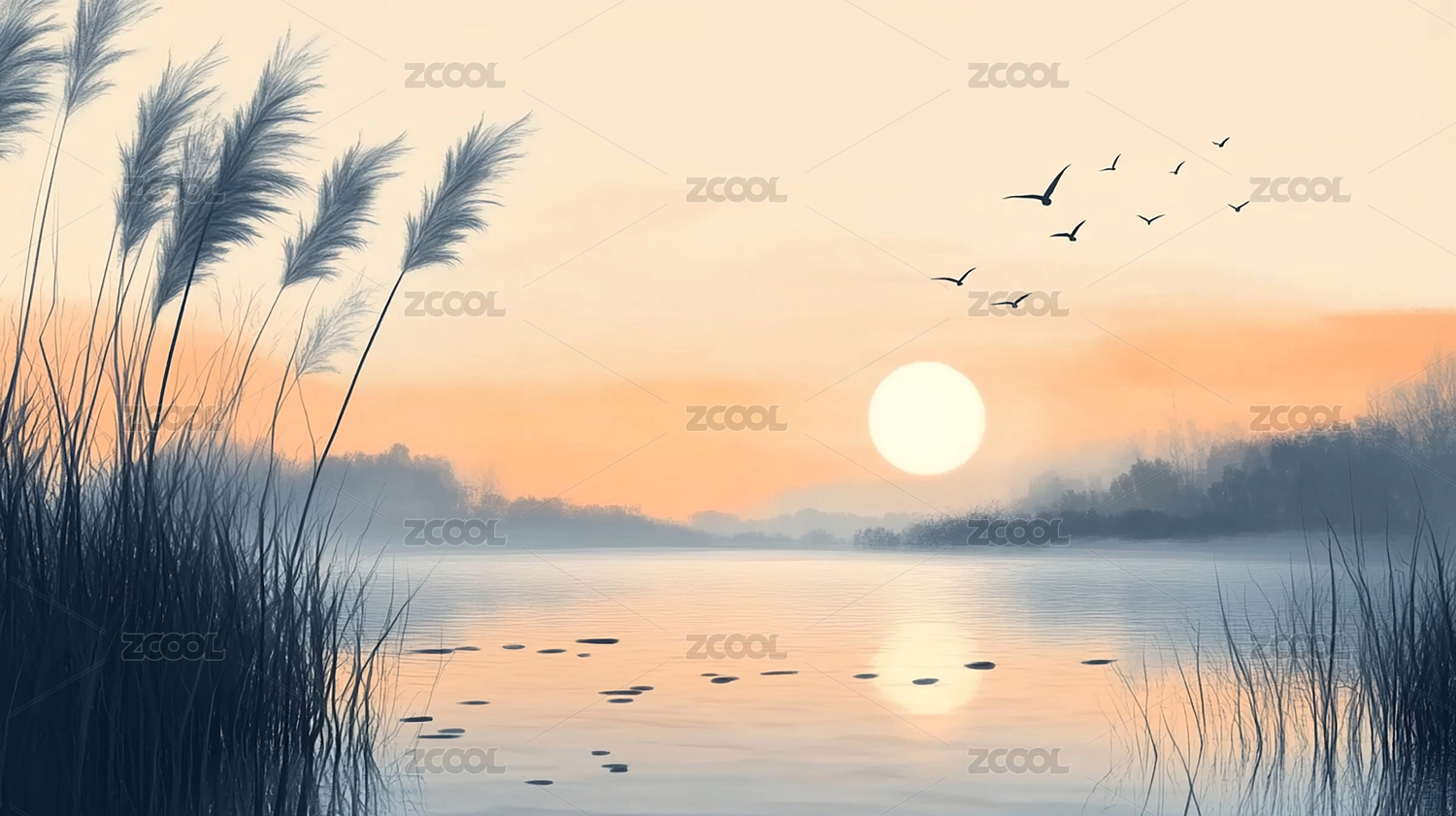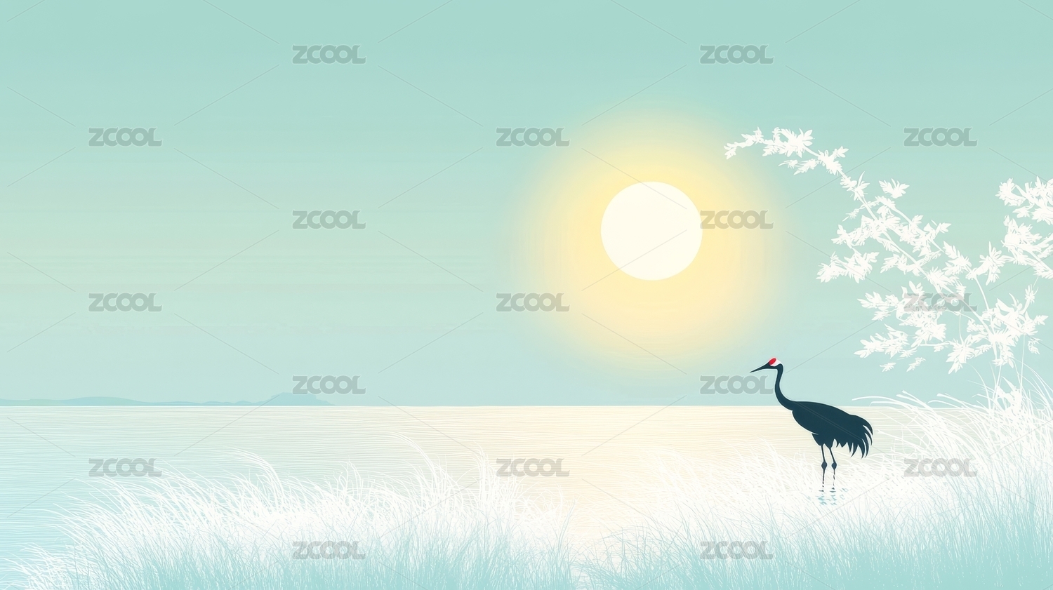 湖泊,宁静,祥和,景色,意境,自然,风景,和谐,夕阳,丹顶鹤