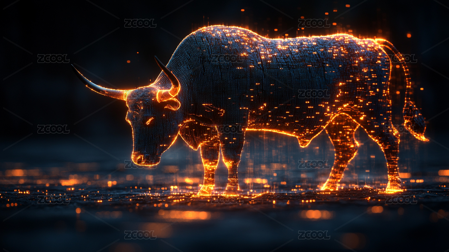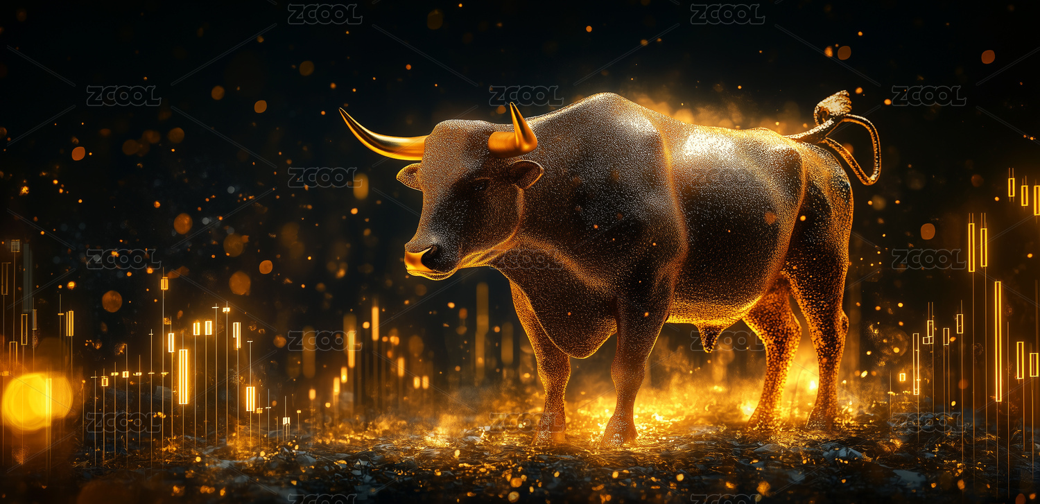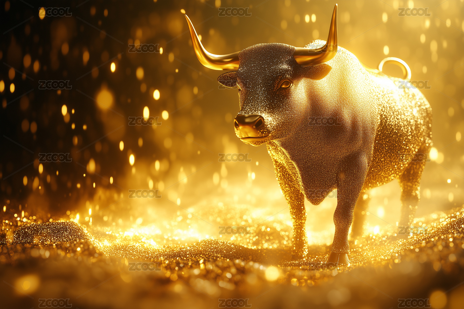 牛,公牛,金光,金属,发光,牛角,十二生肖,牛年,牛市,股市