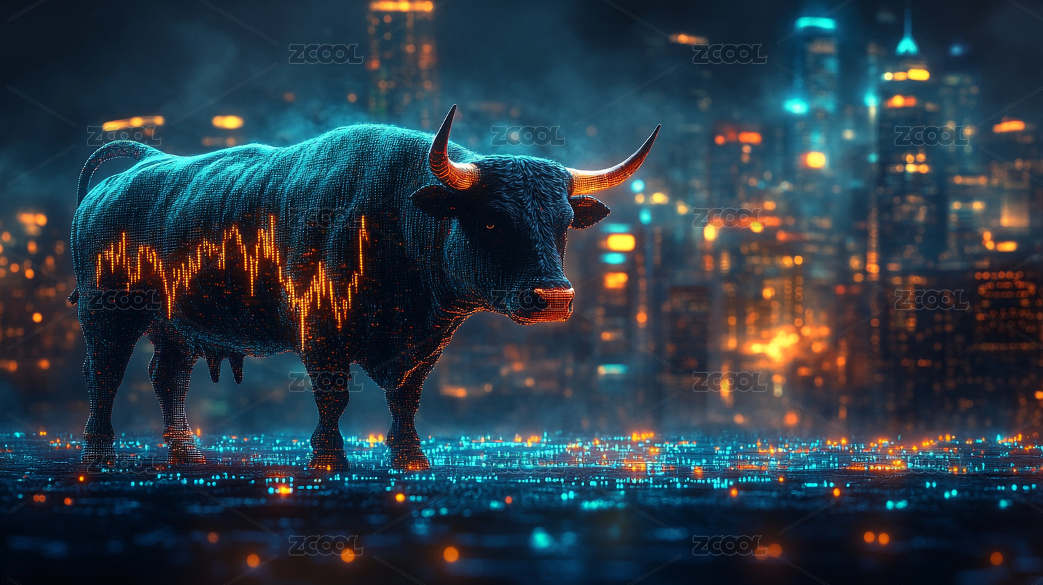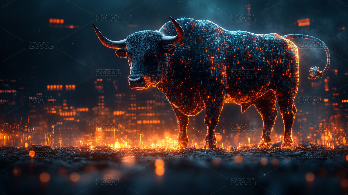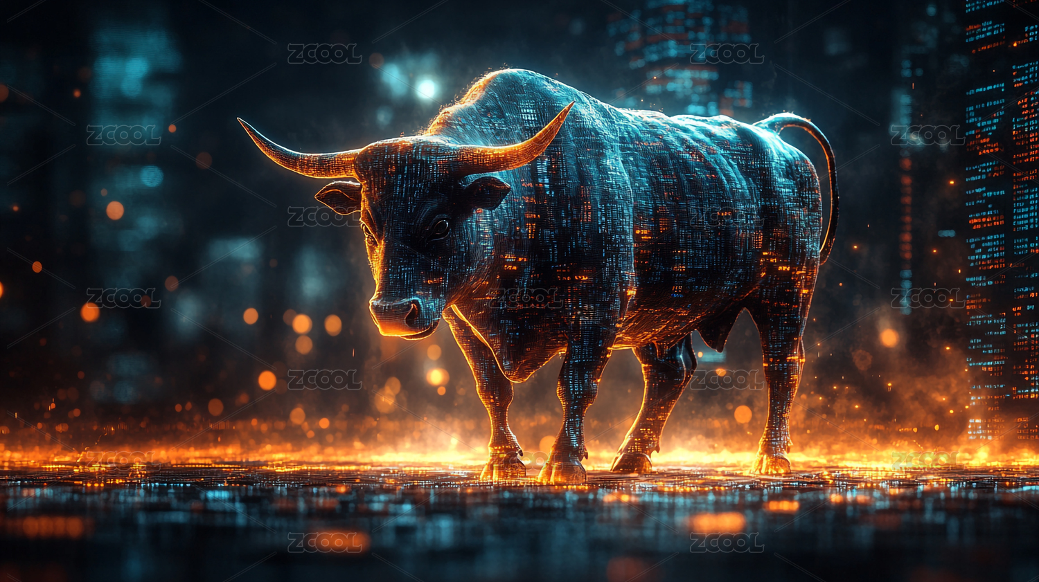 牛,公牛,金光,金属,发光,牛角,十二生肖,牛年,牛市,股市