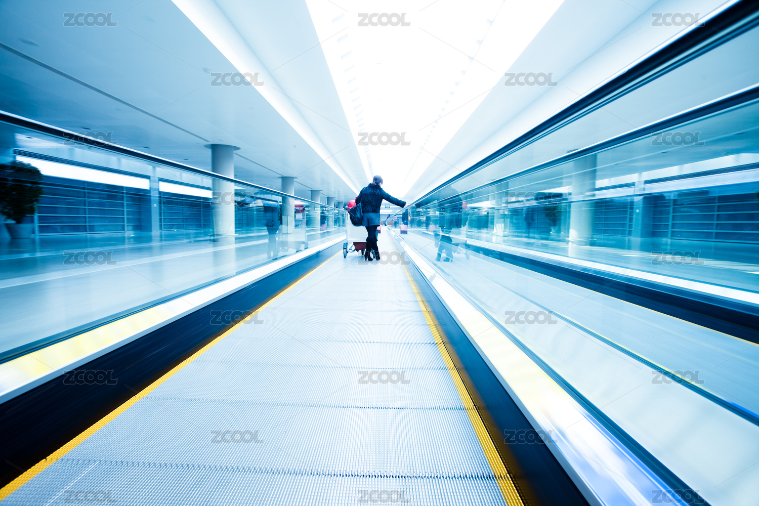 在ariport运动自动扶梯,商业背景,概念,蓝色色调的图像。