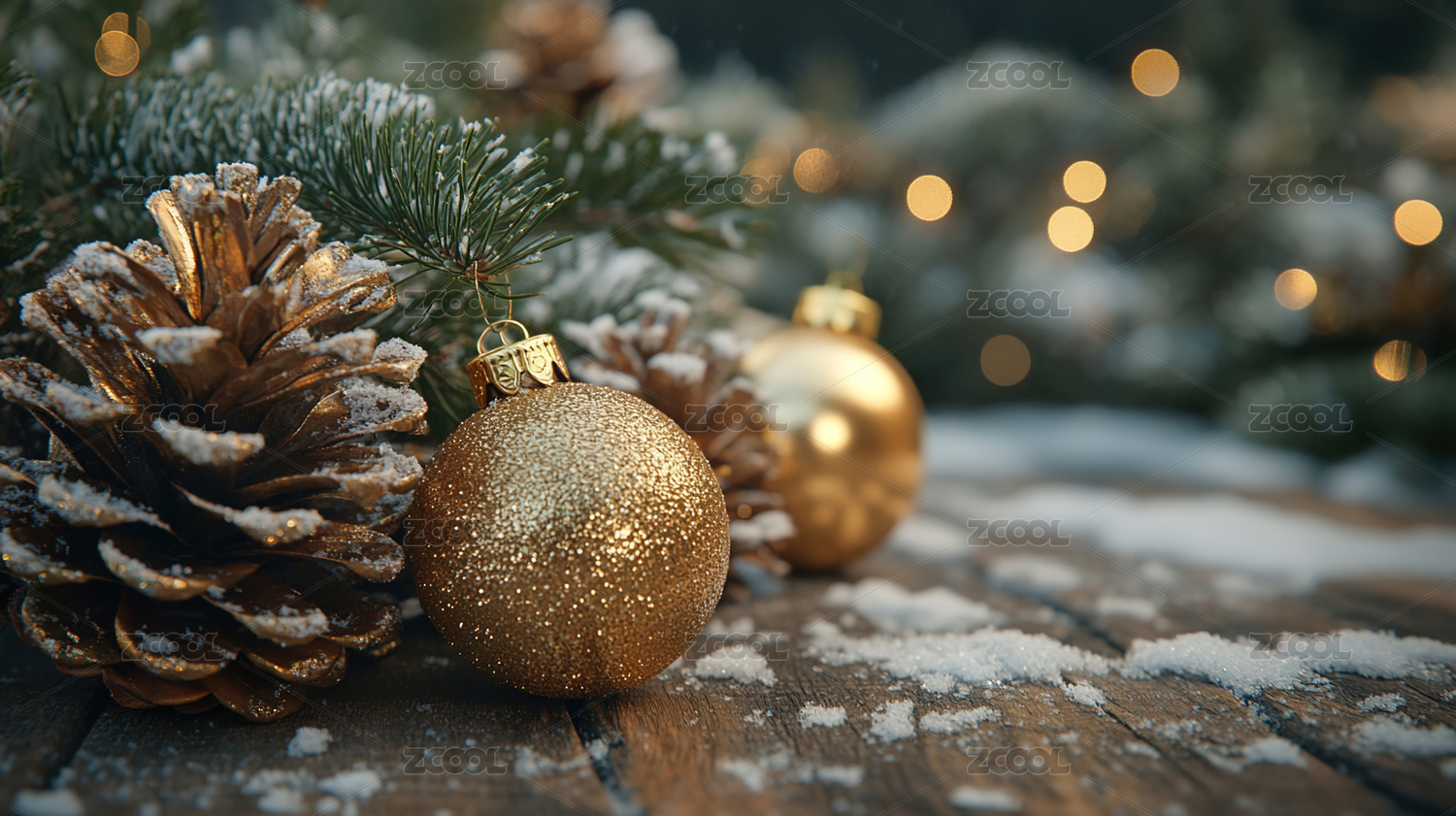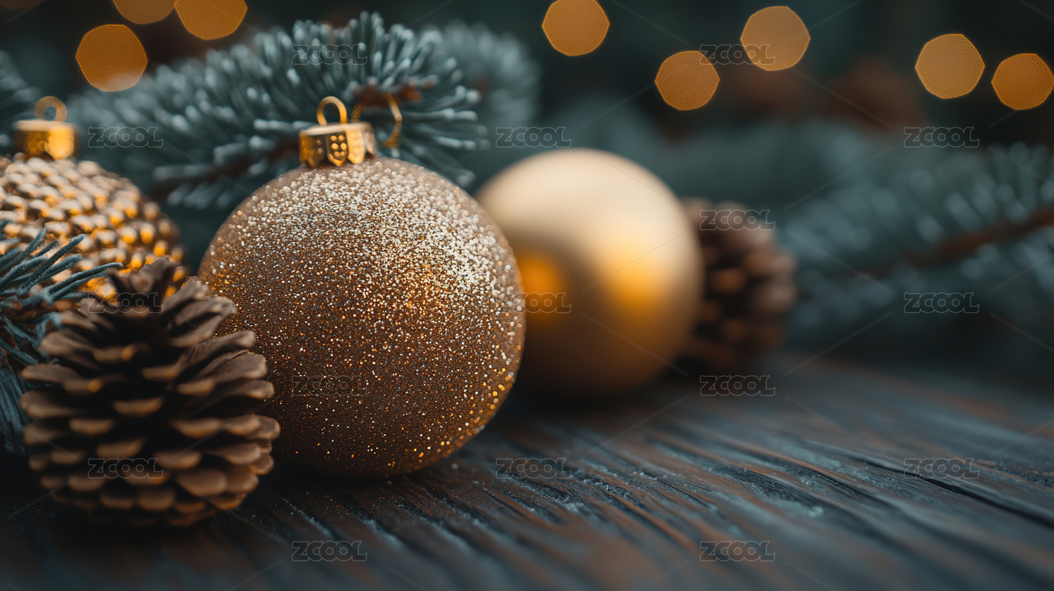 圣诞节礼物盒、圣诞树和装饰品放在桌子上