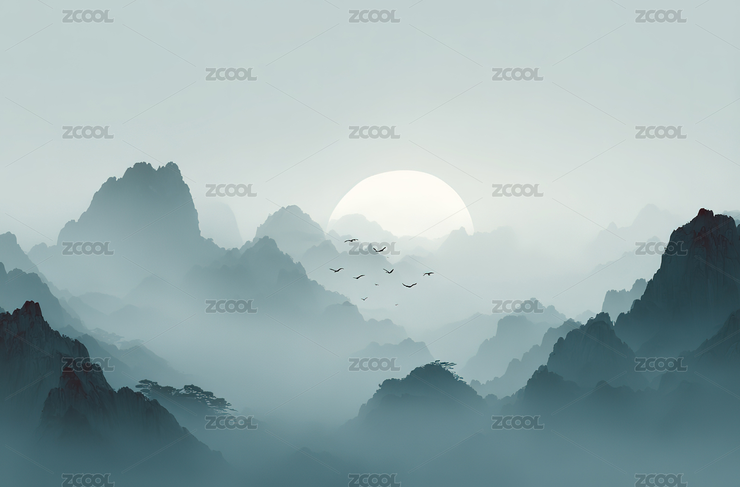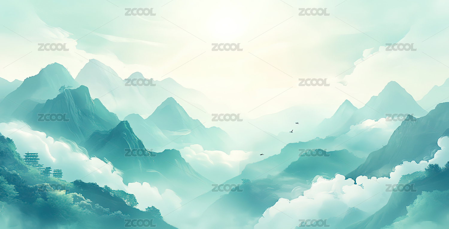 中国风大气山水水墨插画