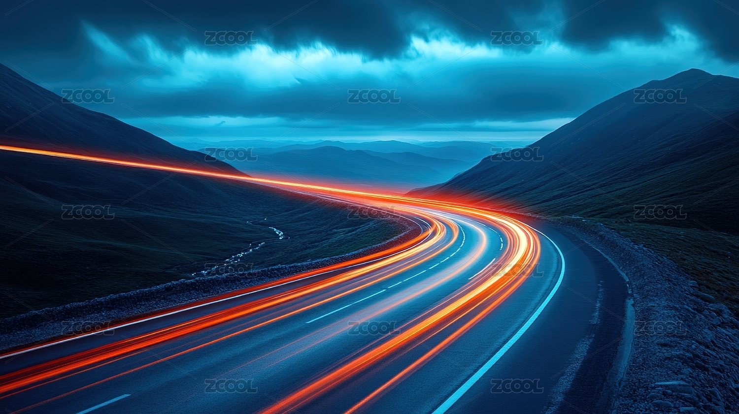 山路,公路,夜色,山脉,雾霭,灯光,蜿蜒,山间,夜空,山峰