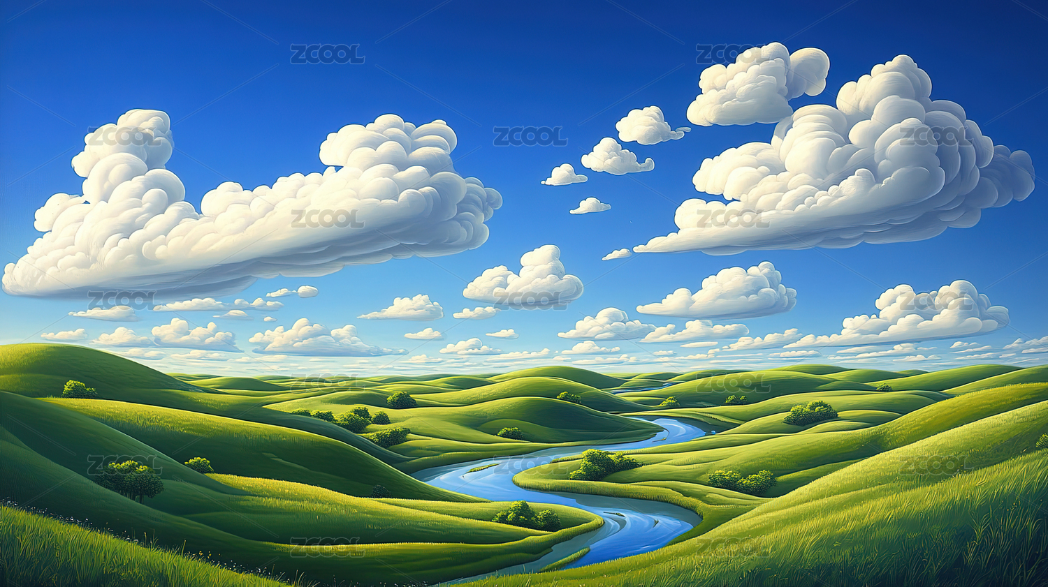 卡通河流田野风景插画