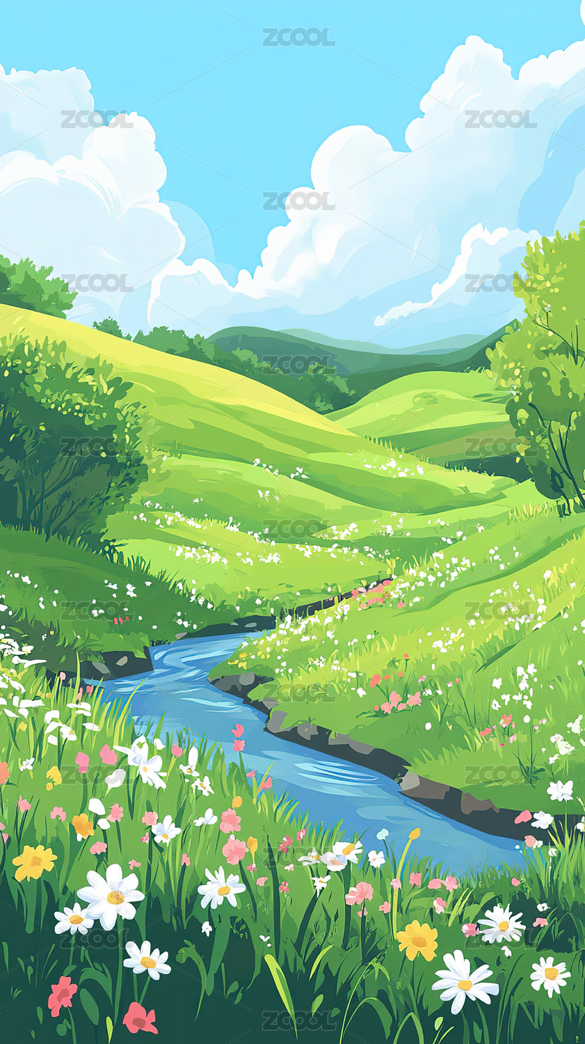 无人,绿色,户外,自然,天空,插画,风景,夏天,高山,树