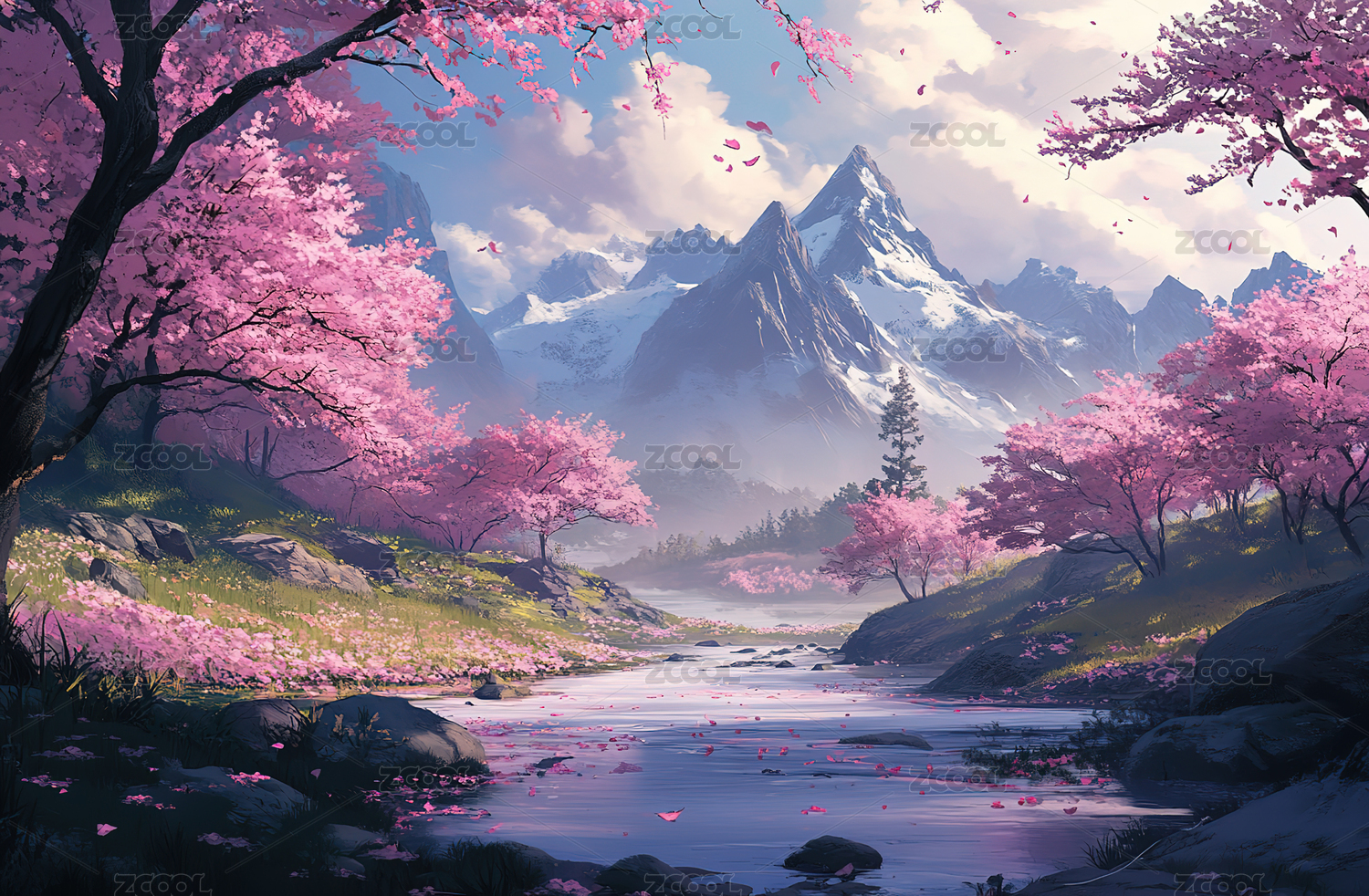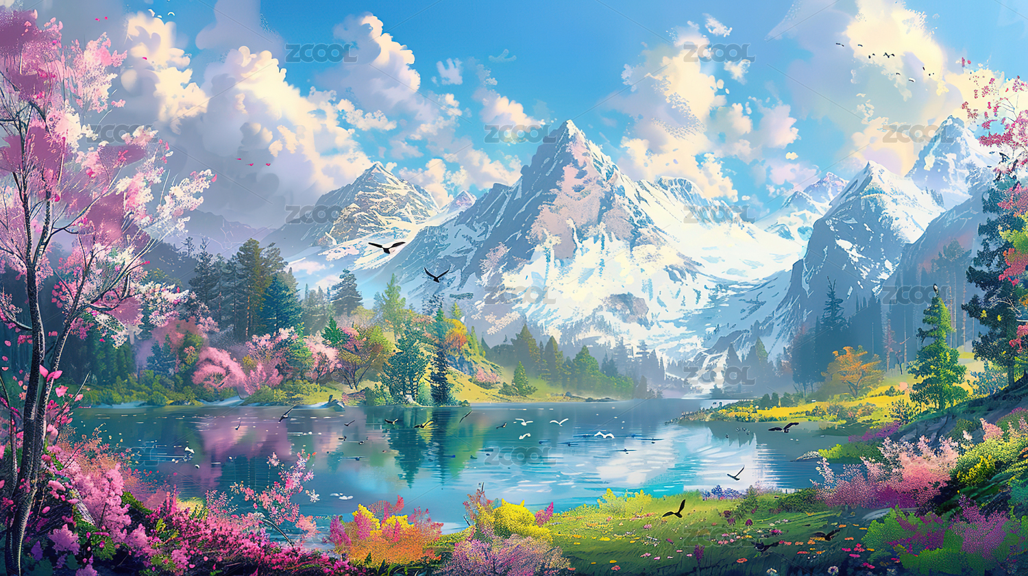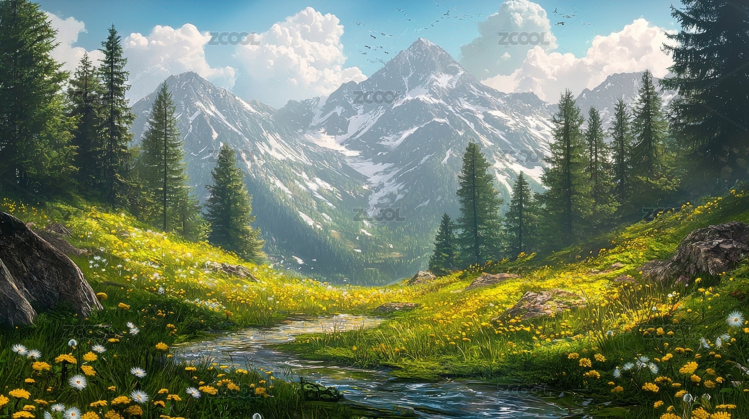 自然,背景,户外,山脉,山,高山,树木,插画,壁纸,海报