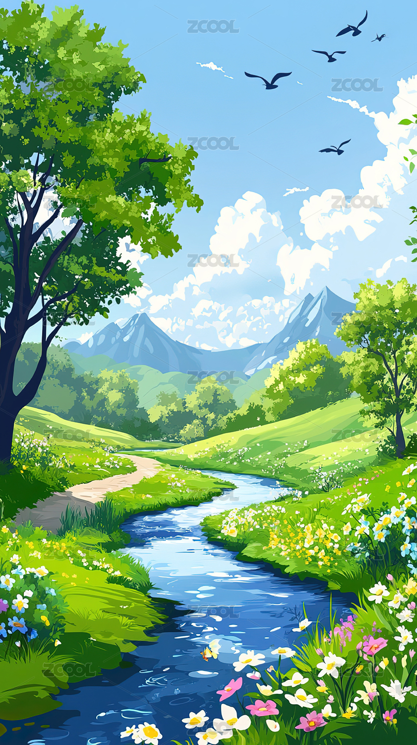 山水风景插画