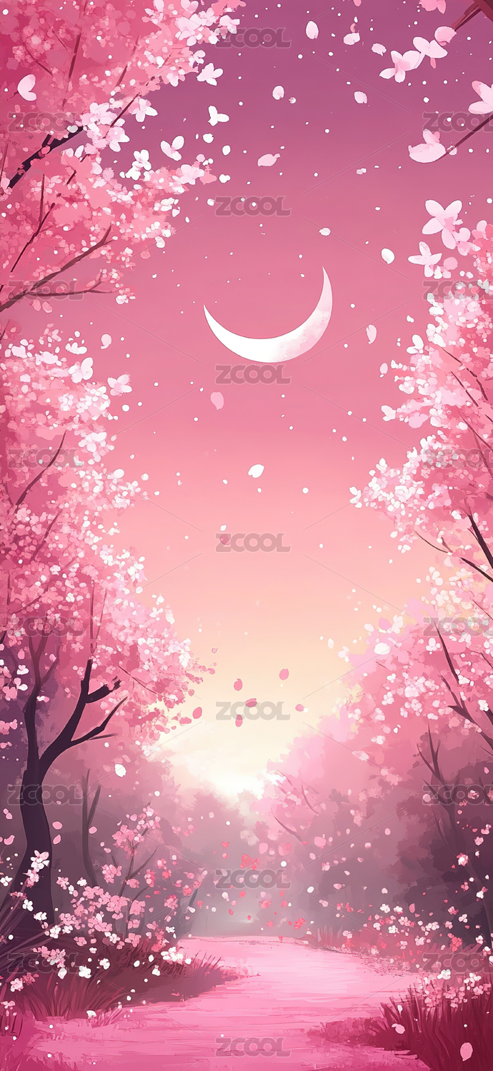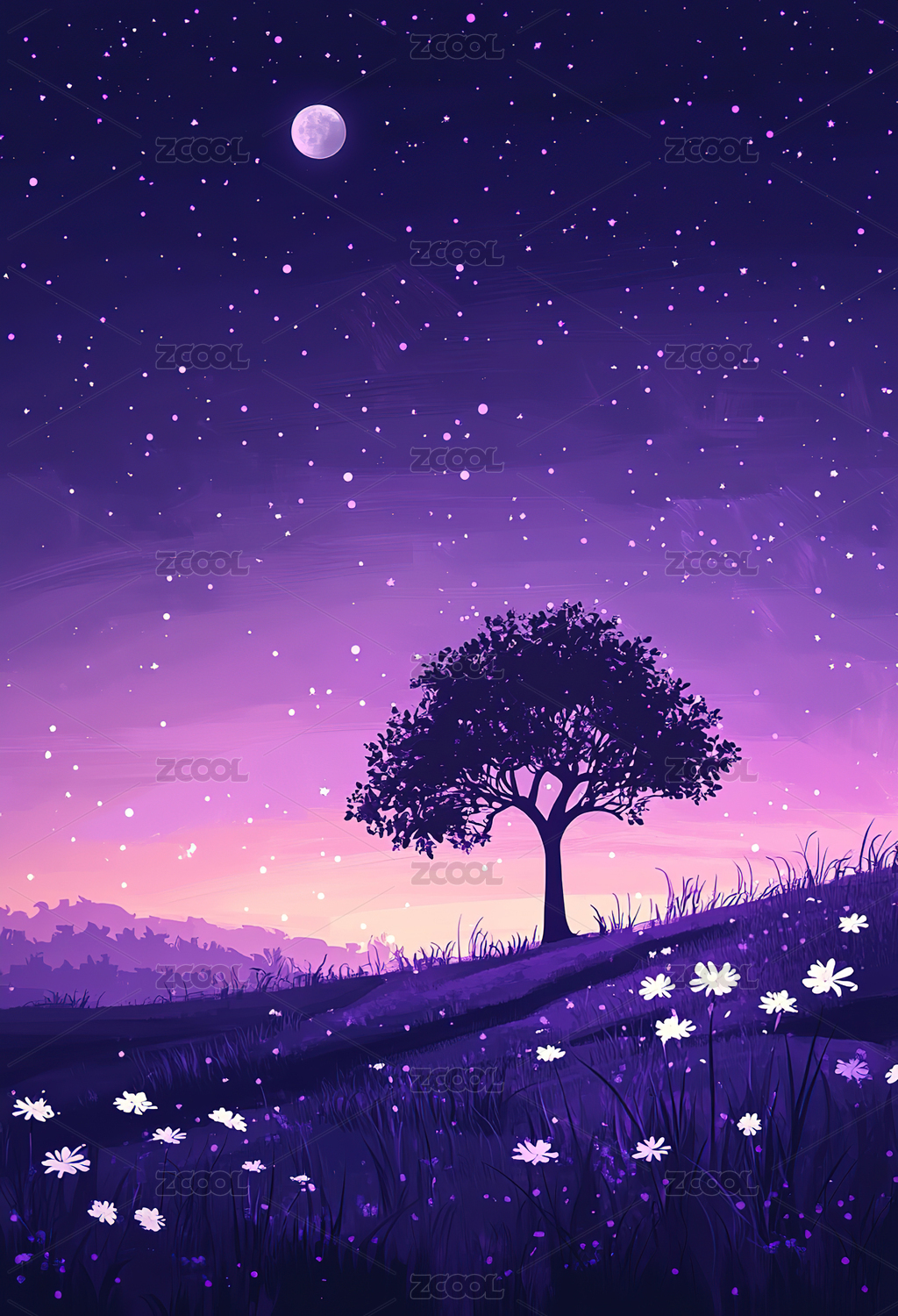 星空树木手绘插画