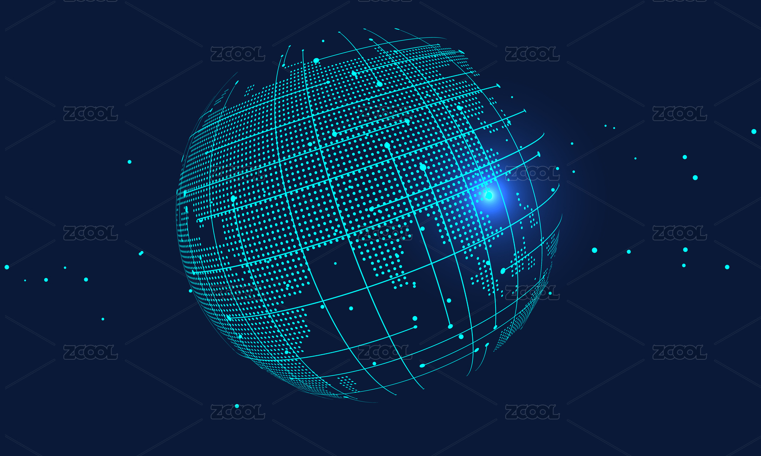像素点、线构图三维发光球体,抽象矢量星球,寓意全球化、国际化,科学技术概念