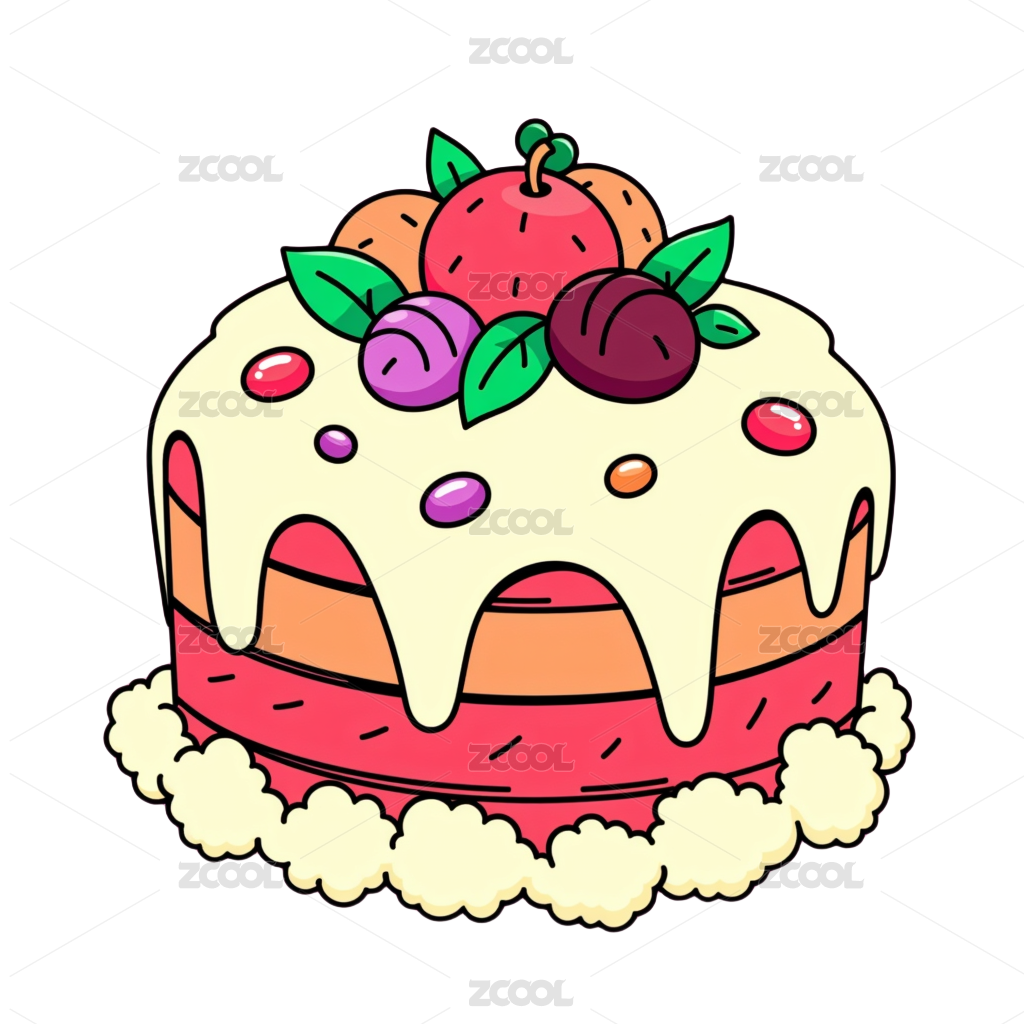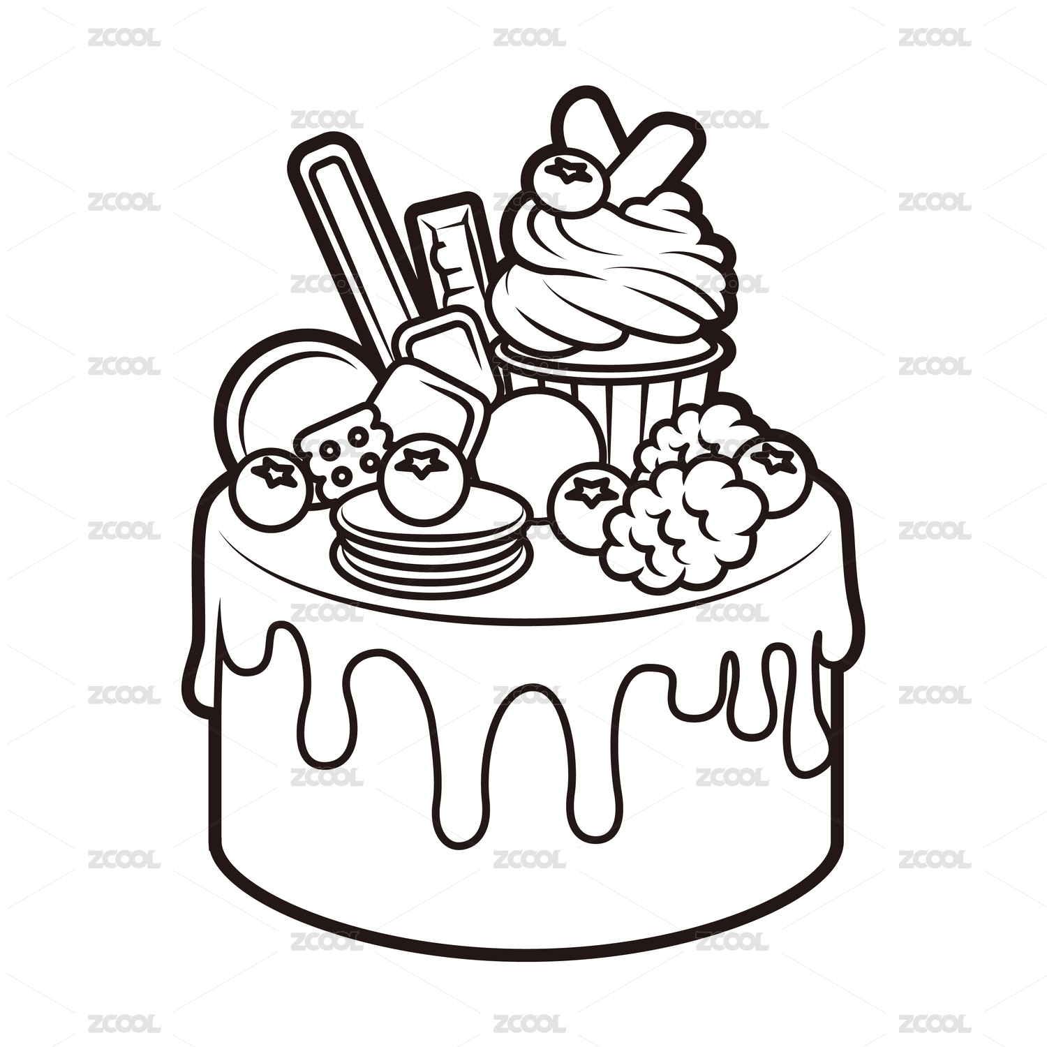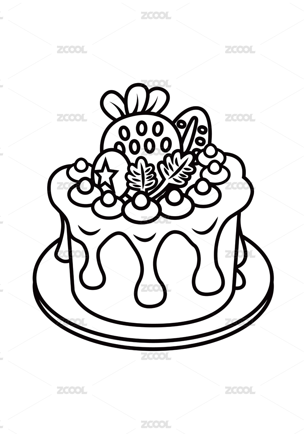 美食食物奶油蛋糕草莓甜品线稿矢量插画