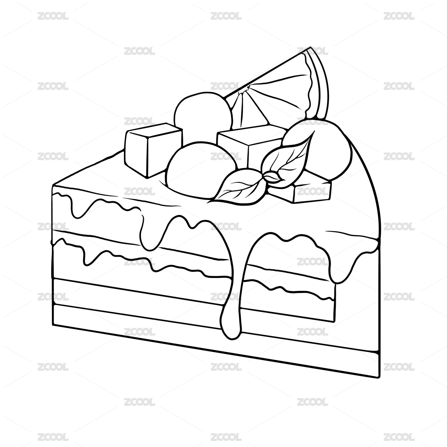 美食食物奶油蛋糕芒果柠檬甜品线稿矢量插画