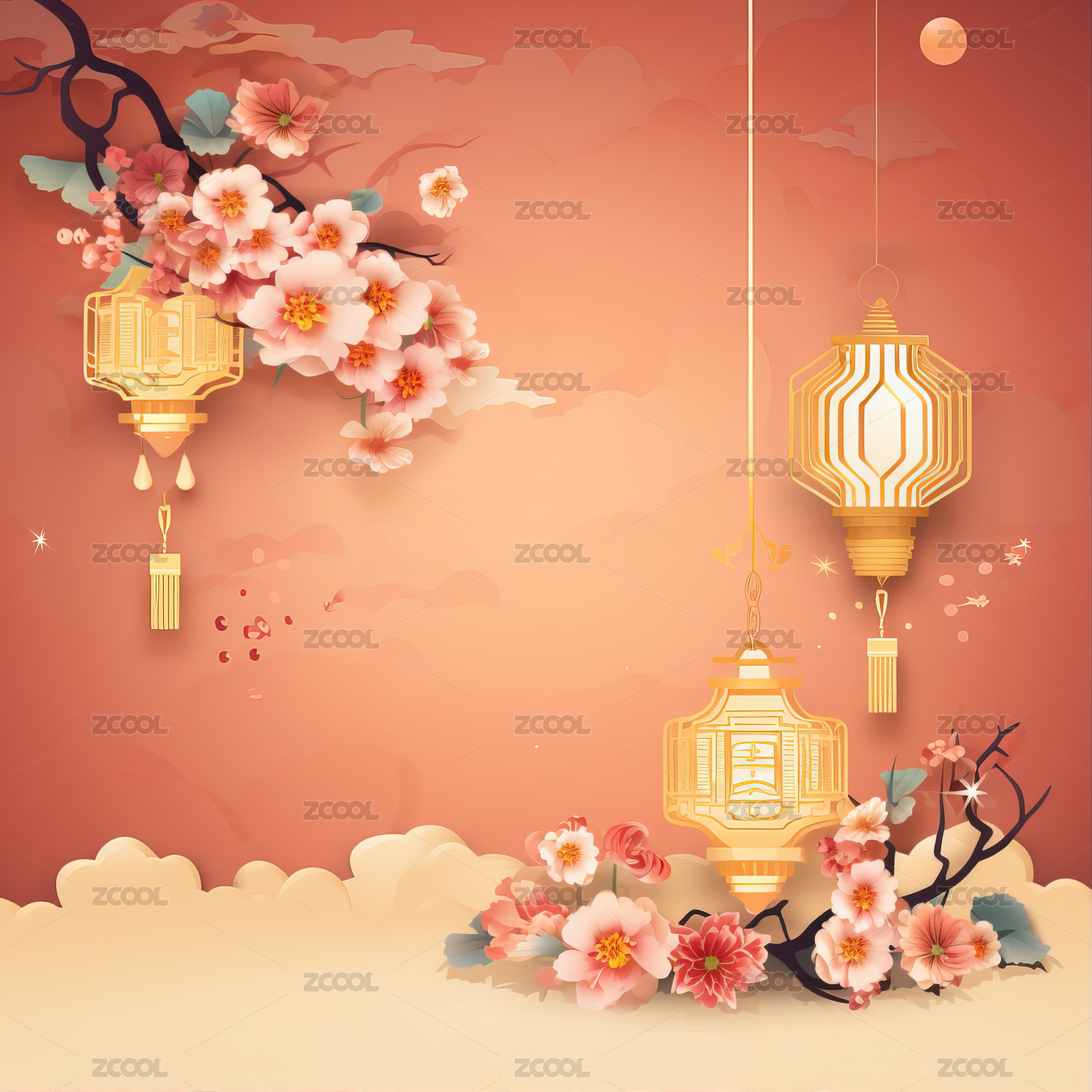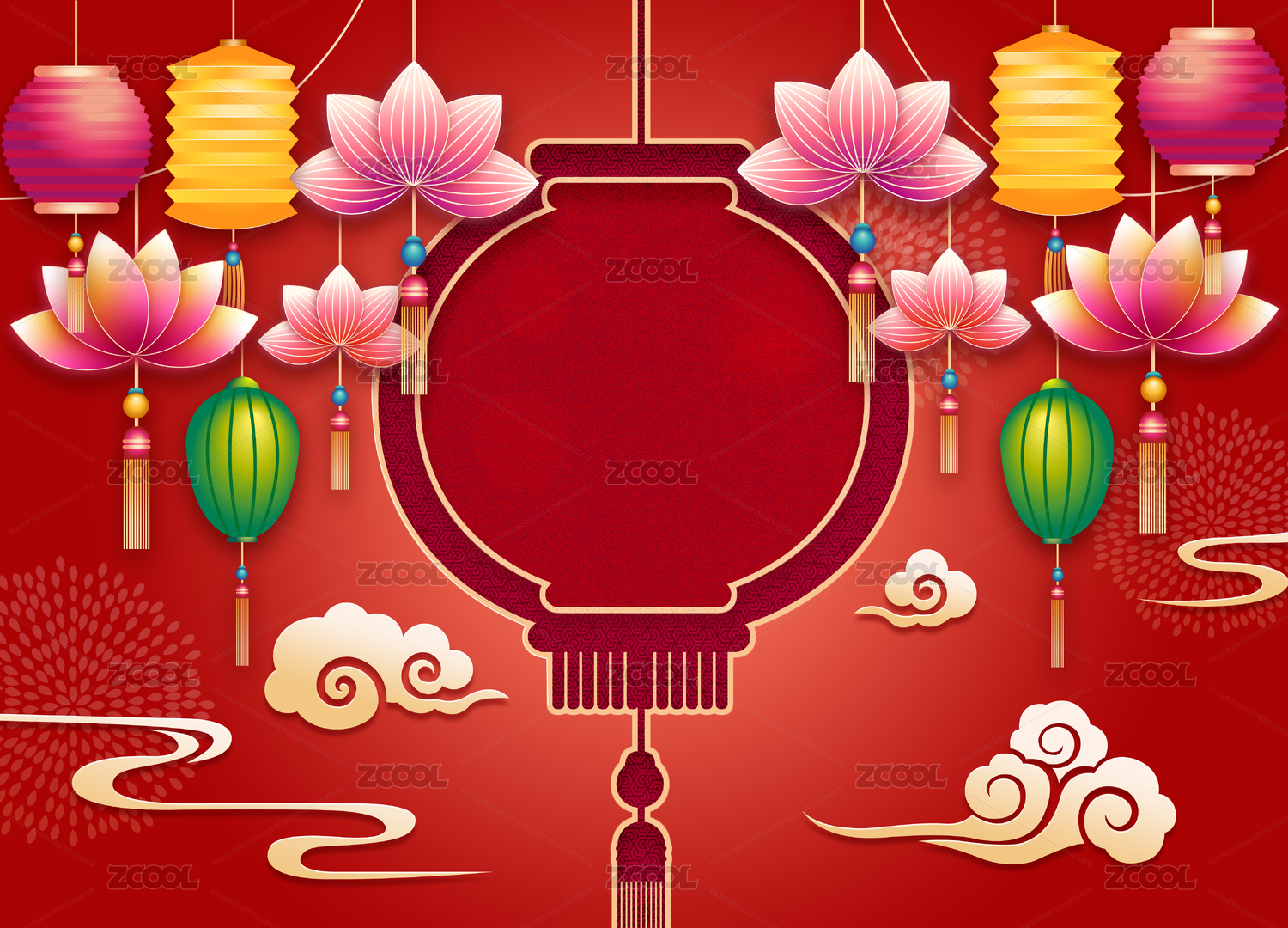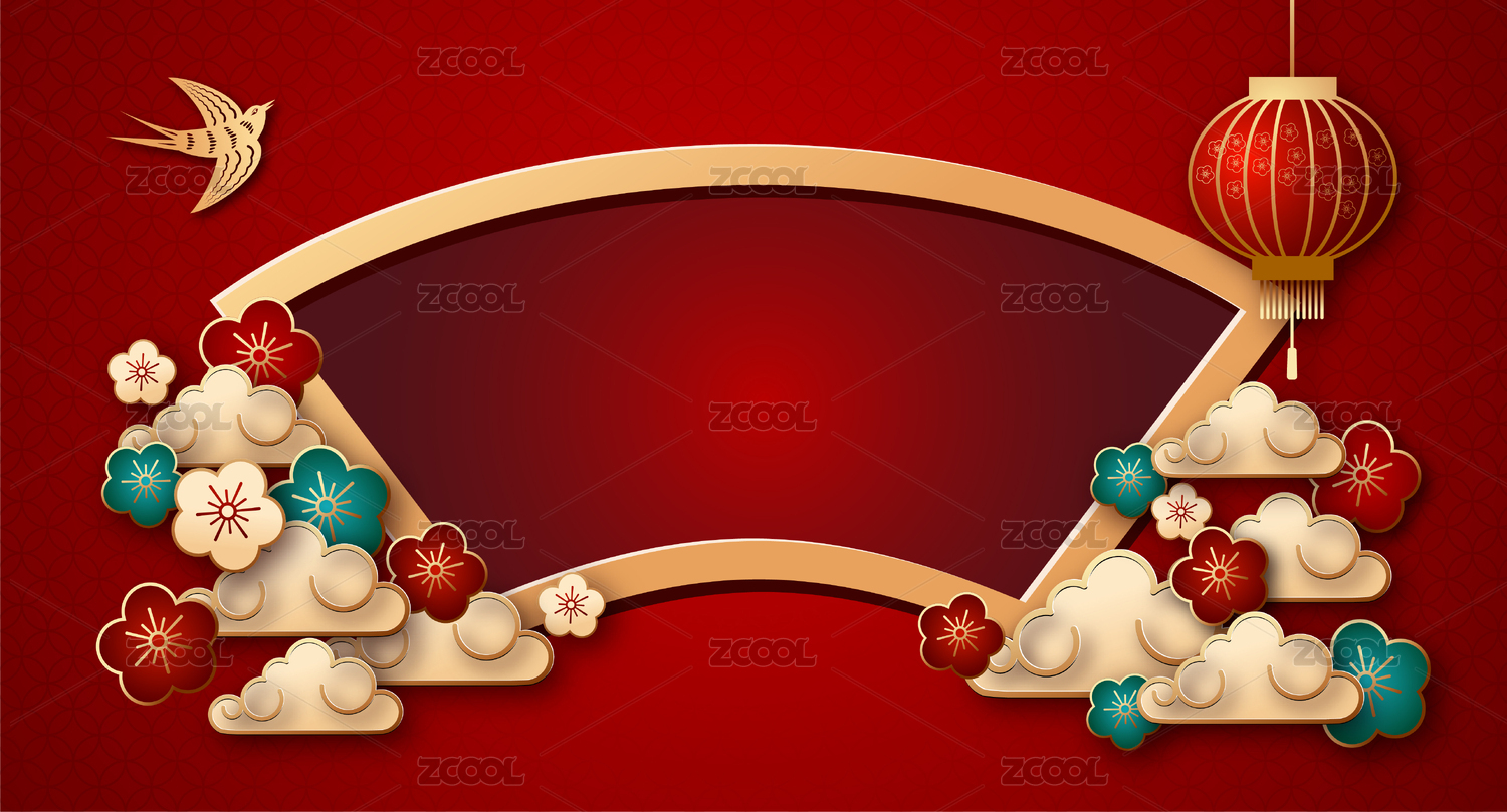 带有灯笼燕子祥云梅花中国结的喜庆节日海报