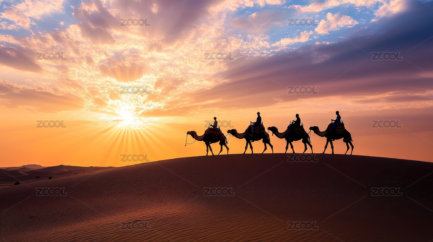 晴天明亮一匹沙漠中行走的单峰骆驼插画绘画