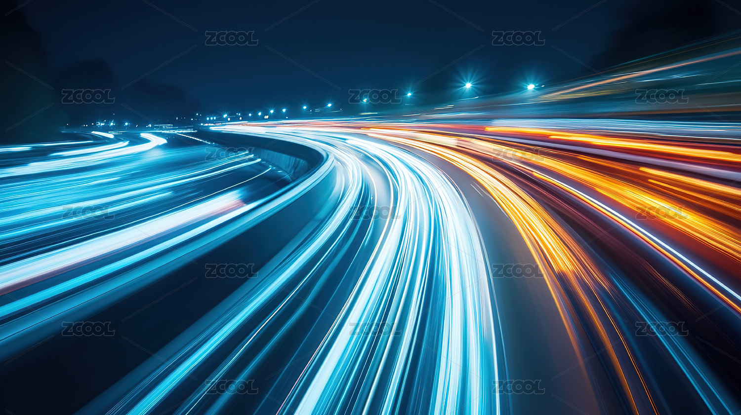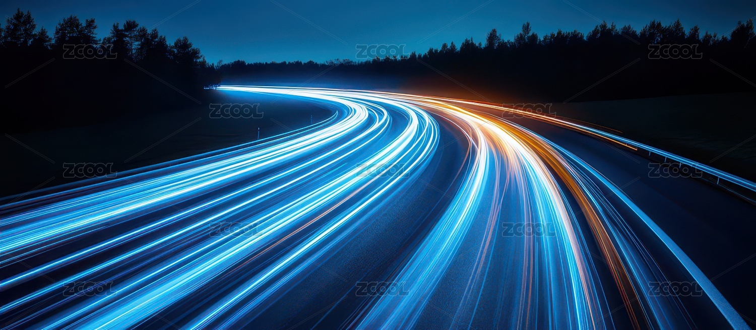 夜幕下的发光高速公路