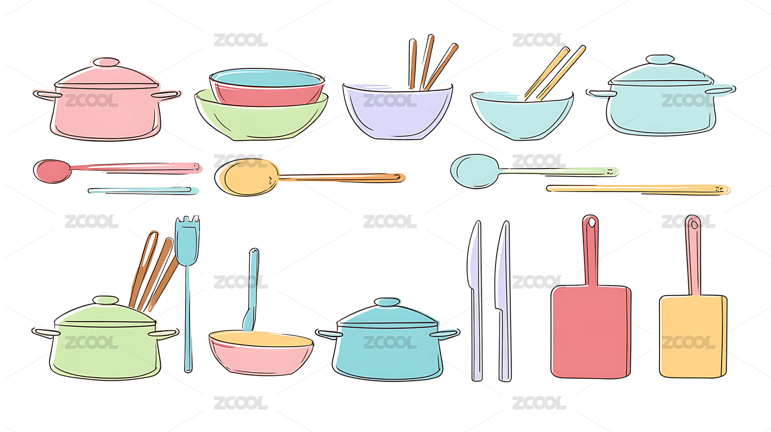 白色背景上的各色婴幼儿用硅胶餐具碗与勺