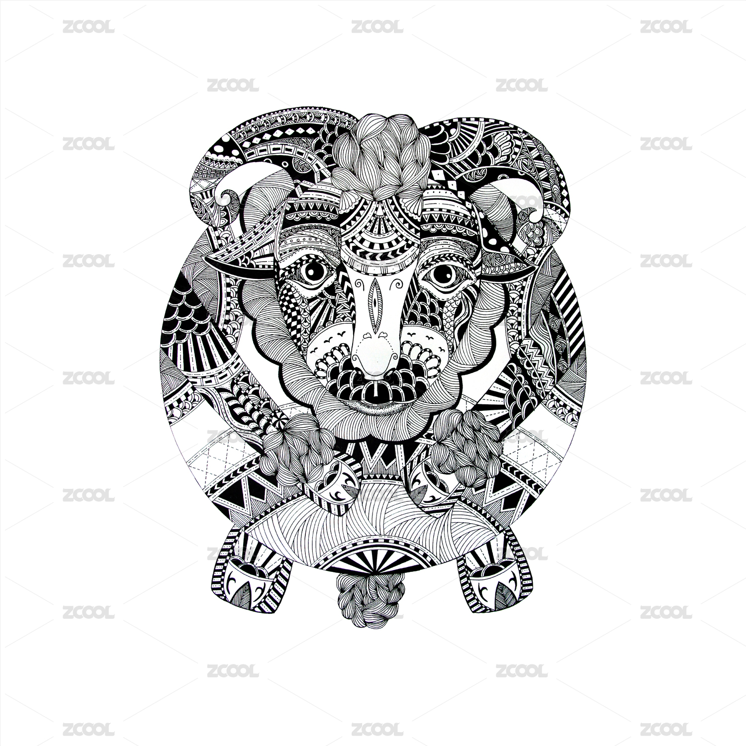 牛黑白线描设计,十二生肖之牛