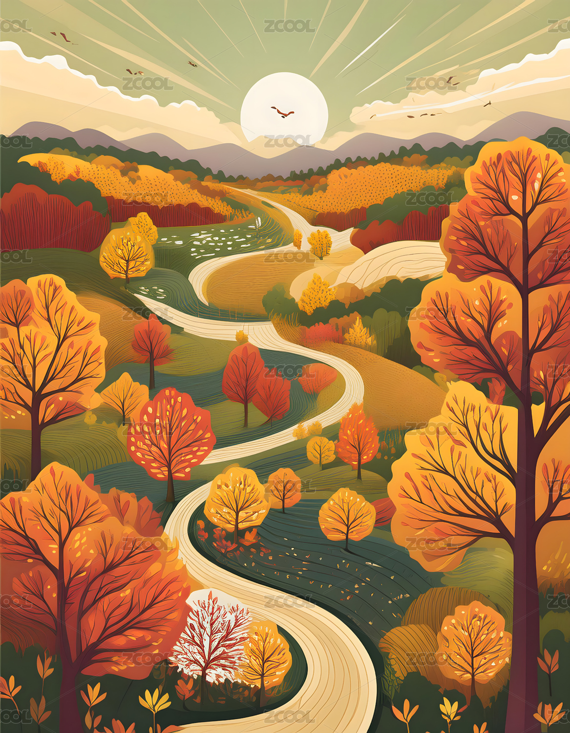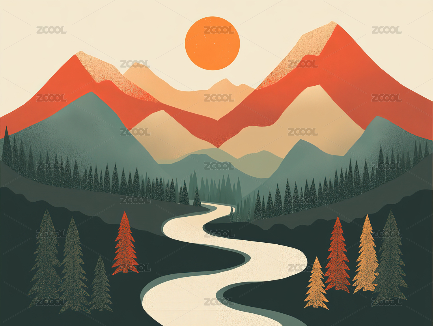 抽象彩色河流山脉风景插画