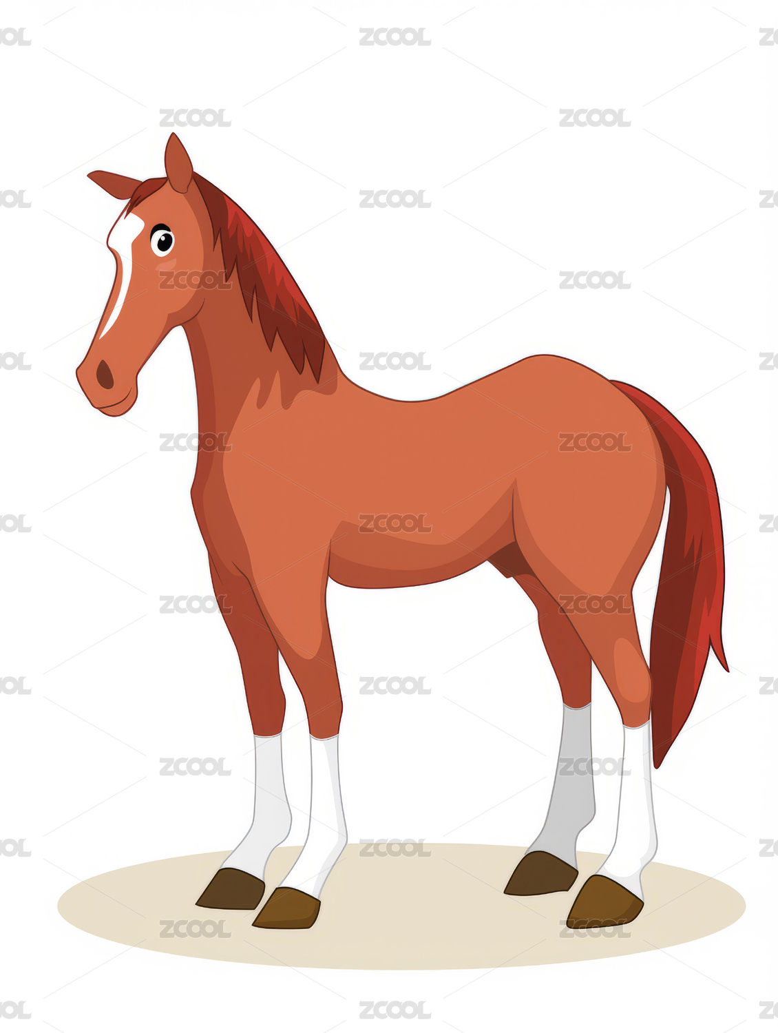 棕白相间站立的马的插画