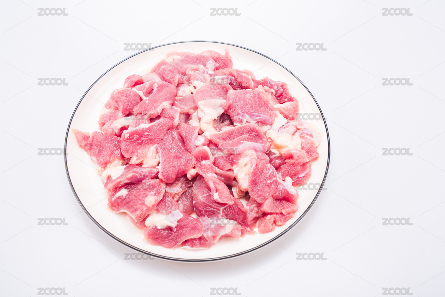 白色背景下的新鲜猪肉
