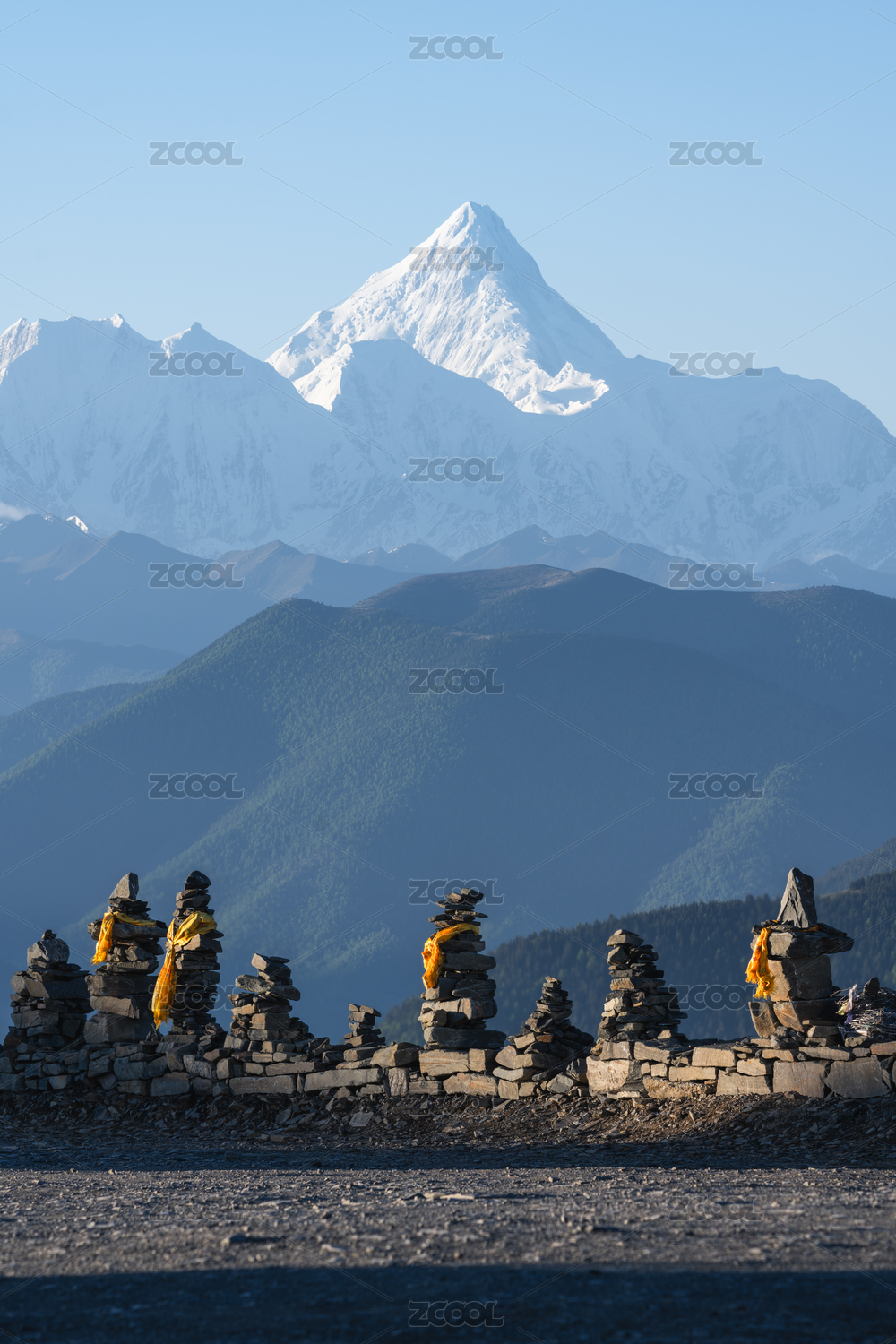 中国四川甘孜州川西居里寺垭口贡嘎雪山风光