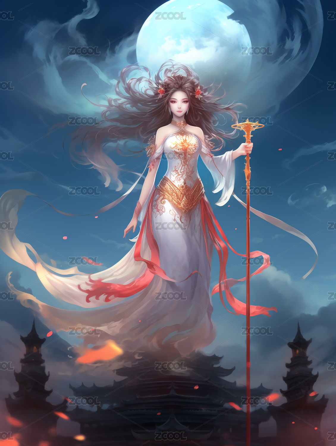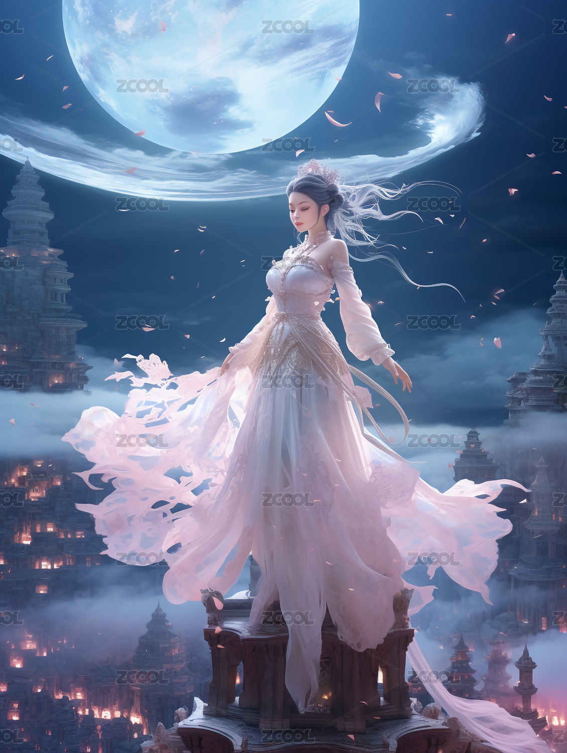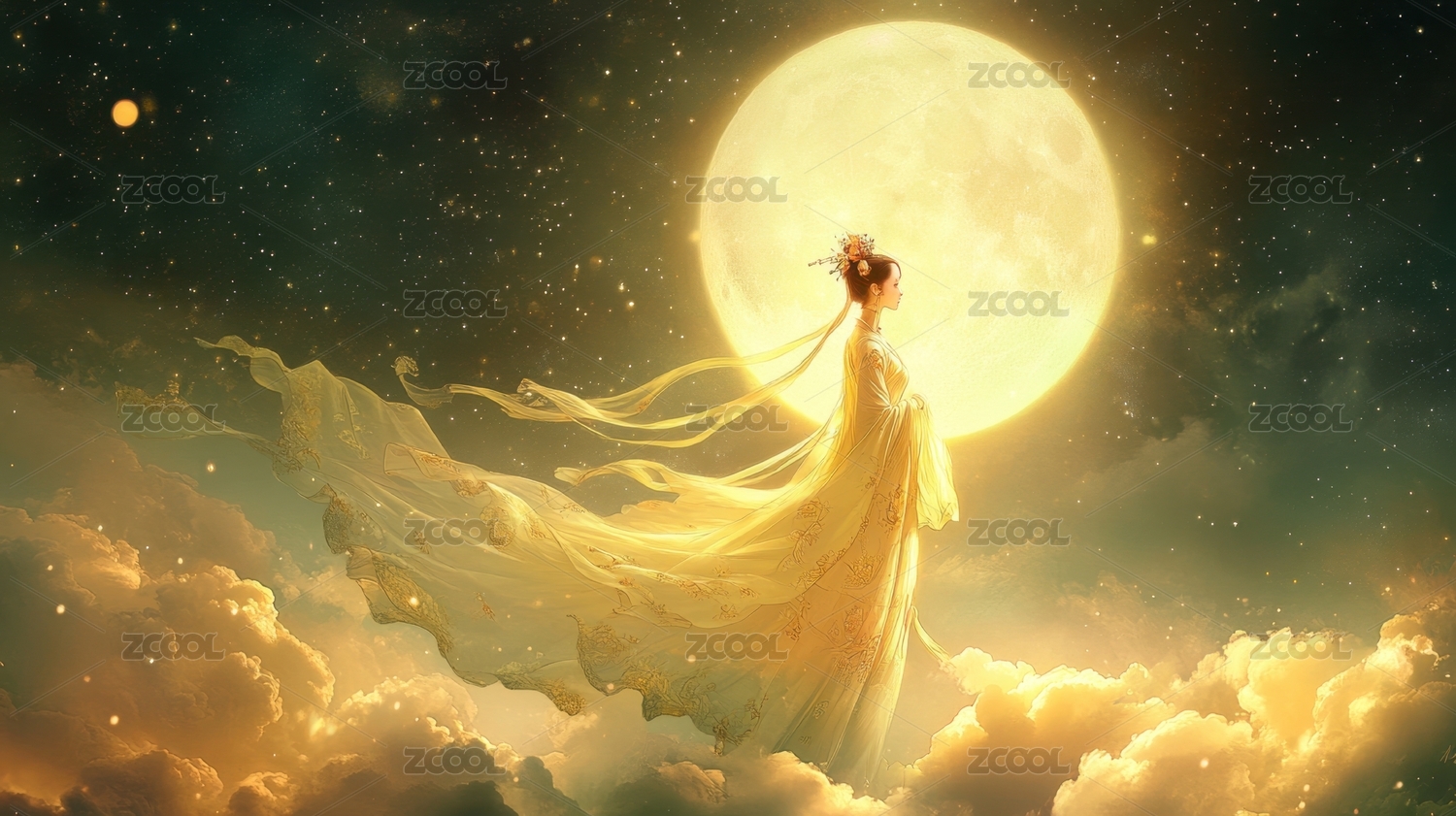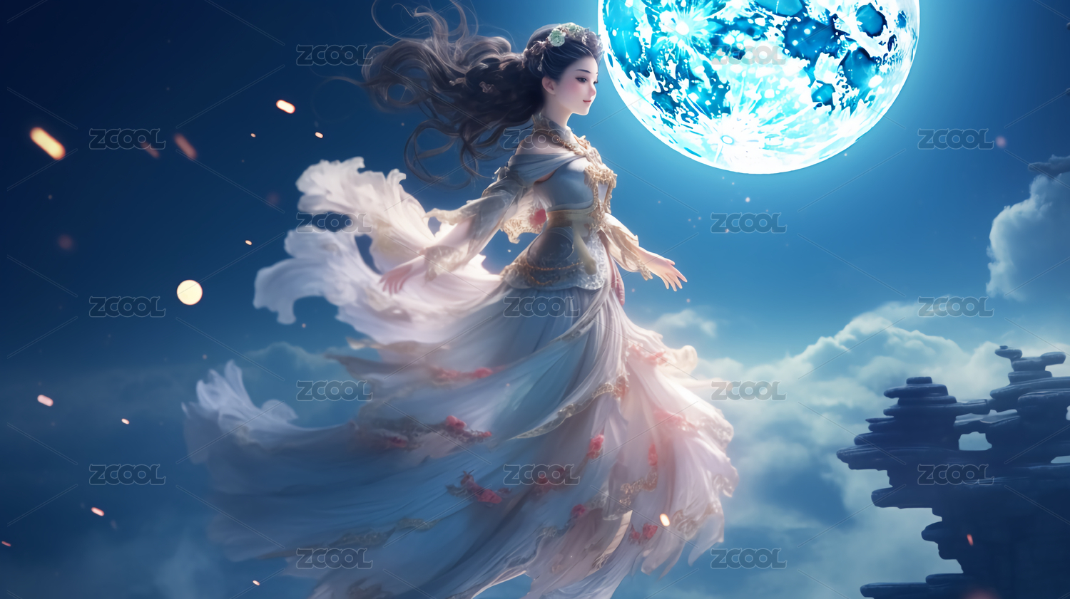 AIGC202403,佳节,立秋,秋天,节日,玉兔,嫦娥,月亮,仙女,神话