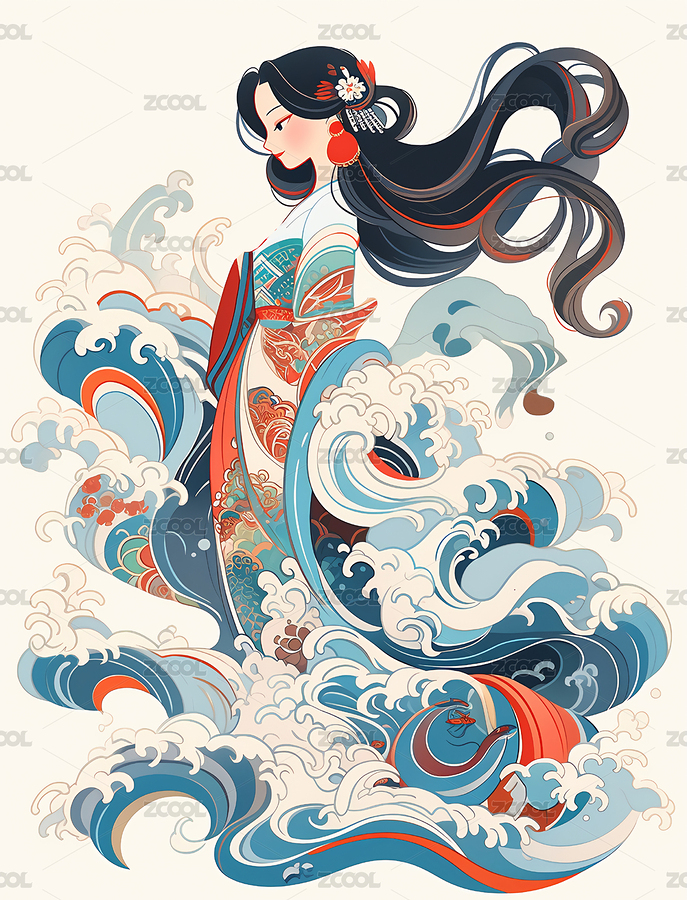 国潮,国风,人物,汉服,美女,女人,美丽,古装,黑色,长发