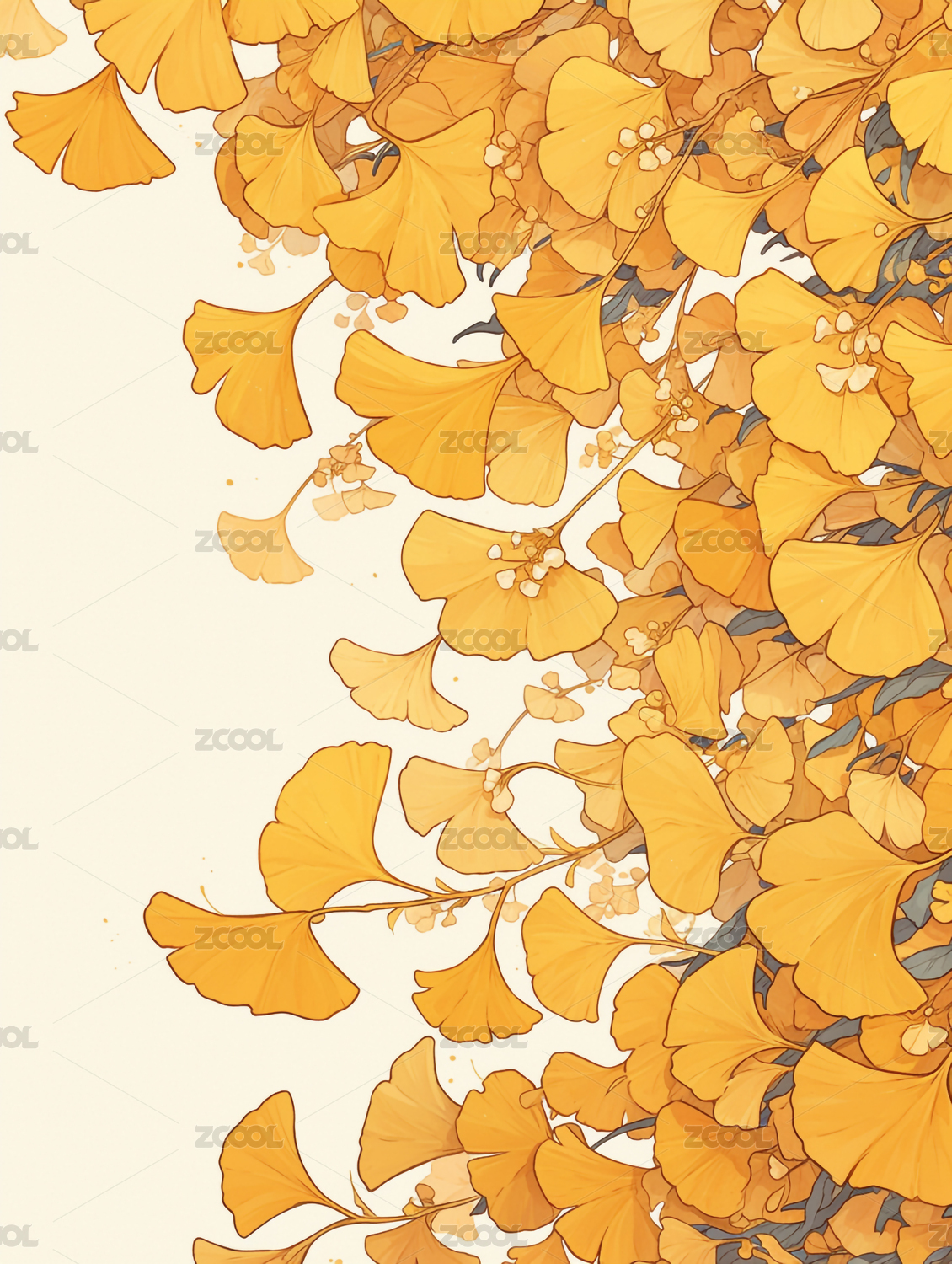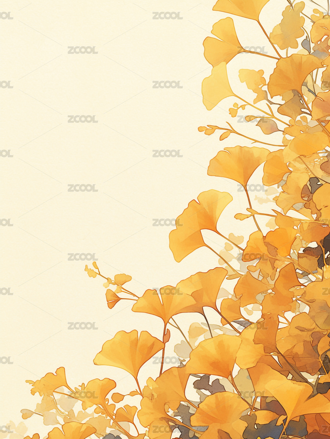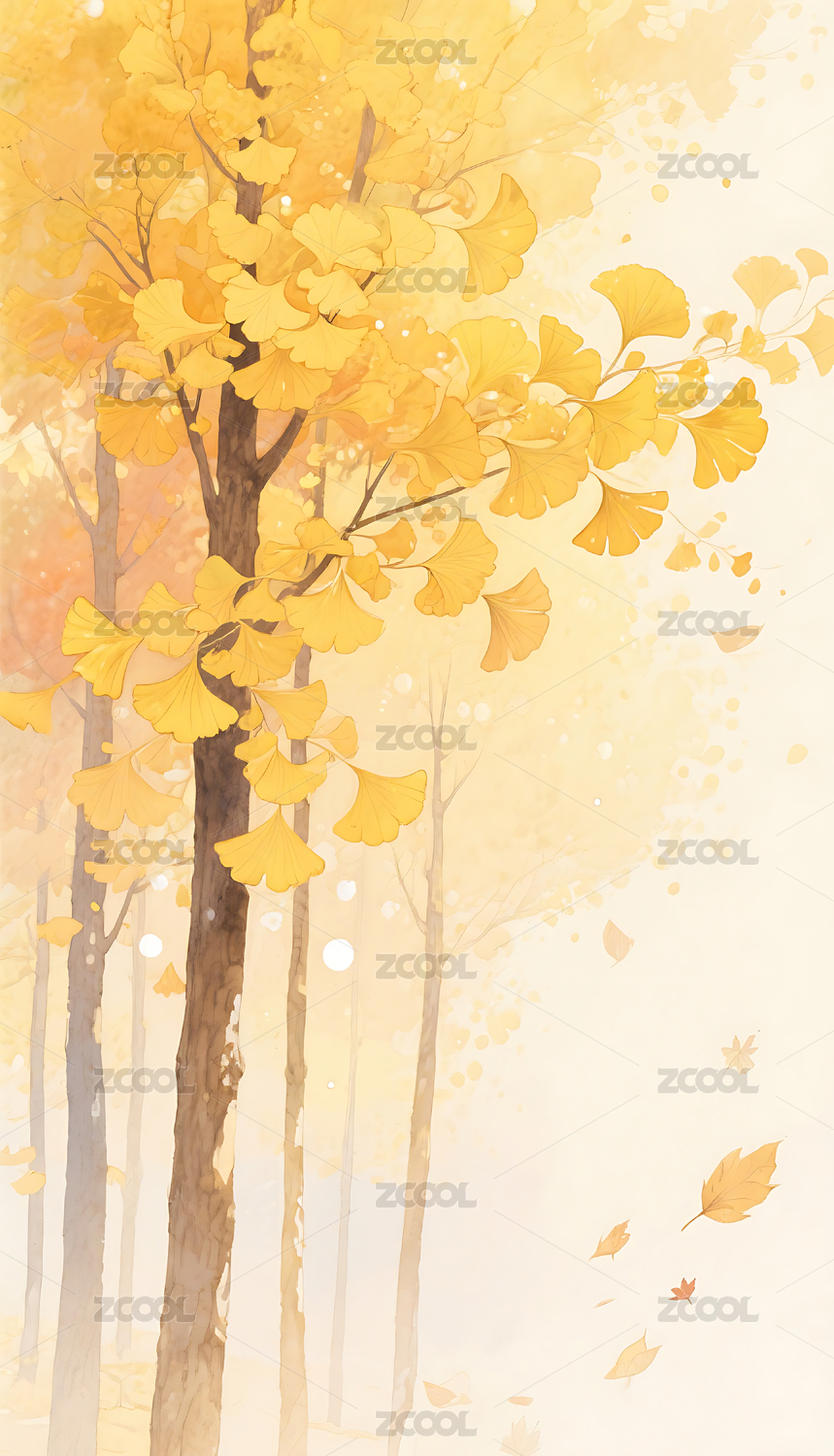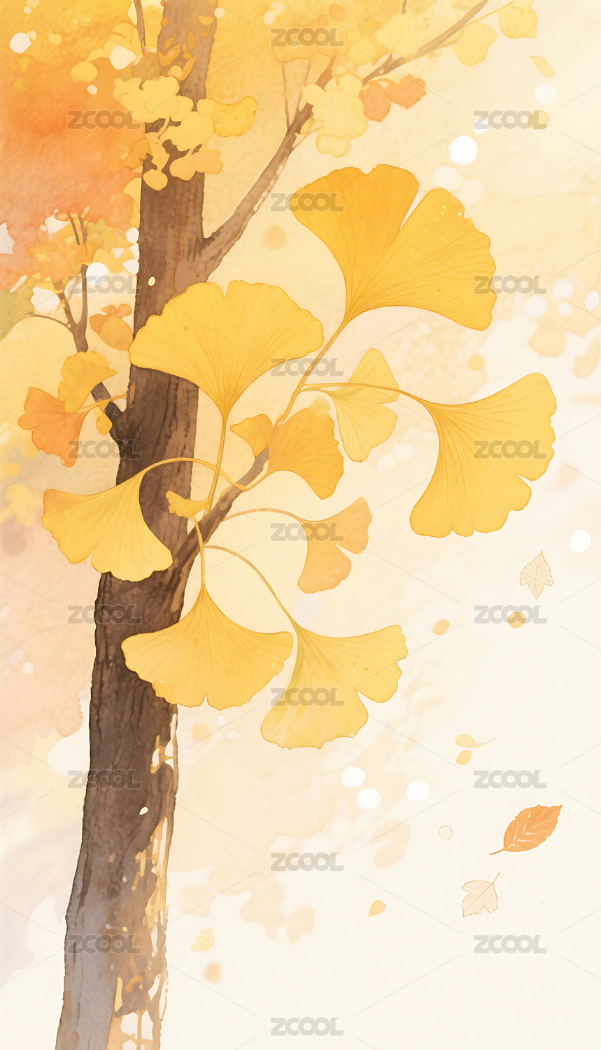 秋天晕染银杏树叶插画背景