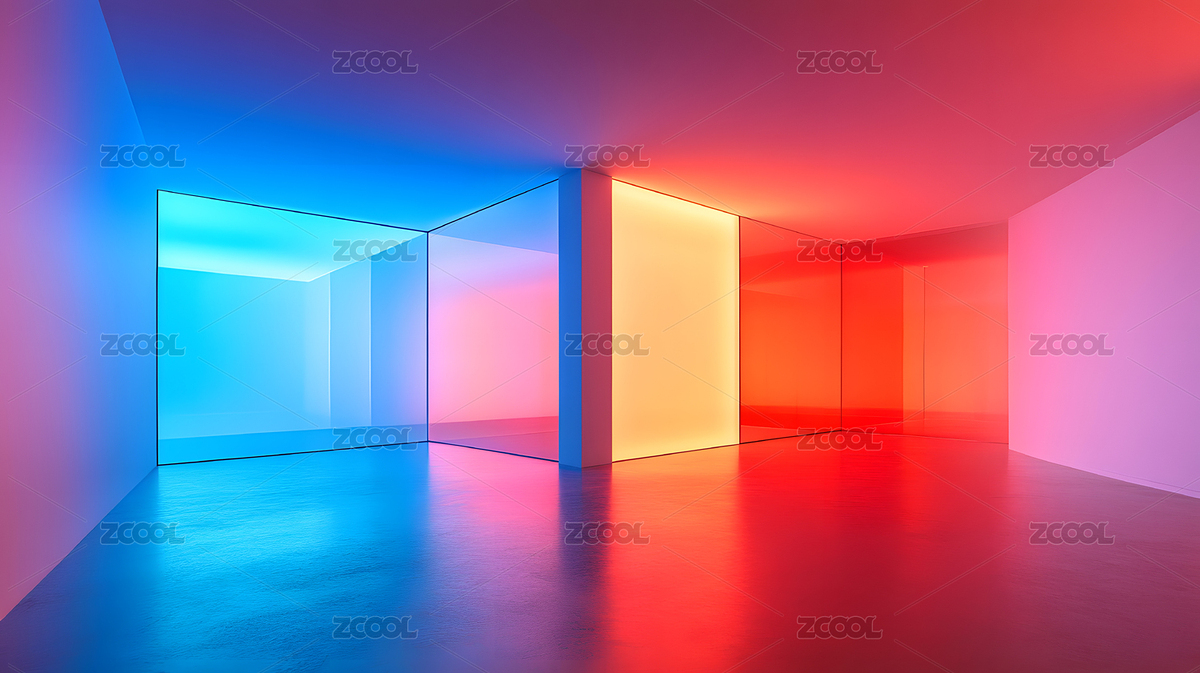 霓虹色调玻璃空间抽象艺术