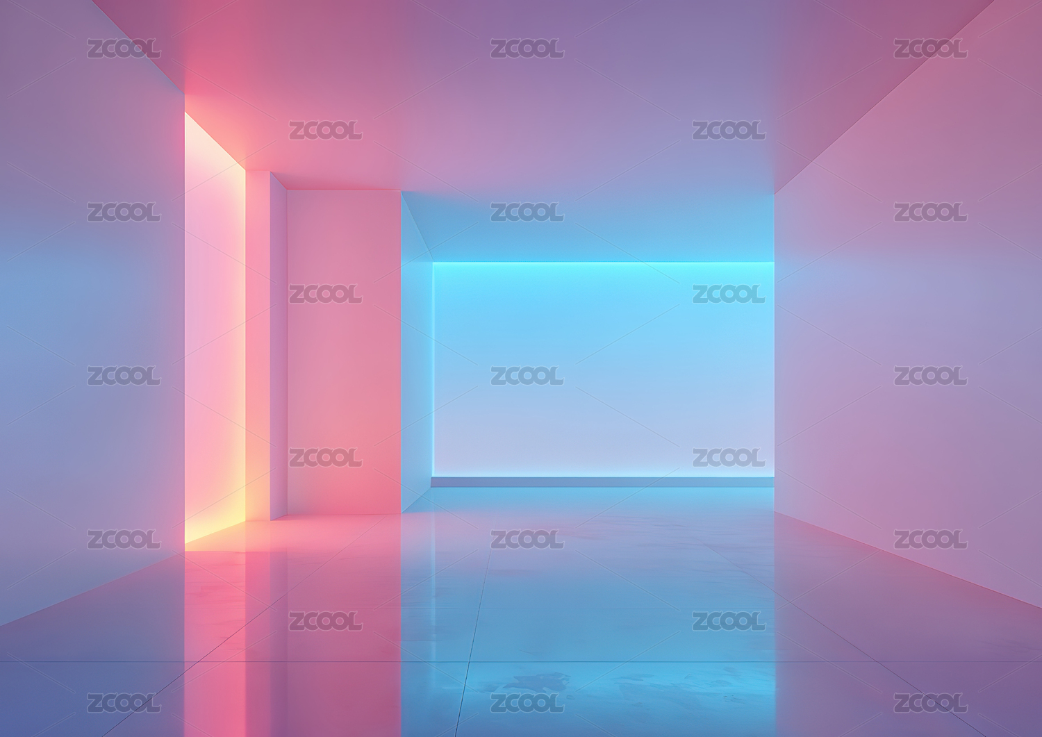 梦幻霓虹色调空旷房间室内设计