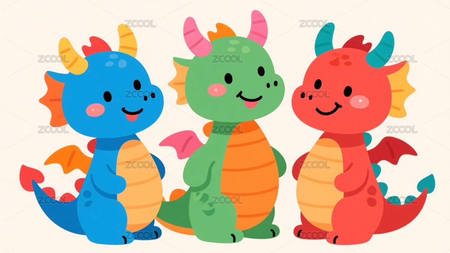 三只可爱彩色小龙插画