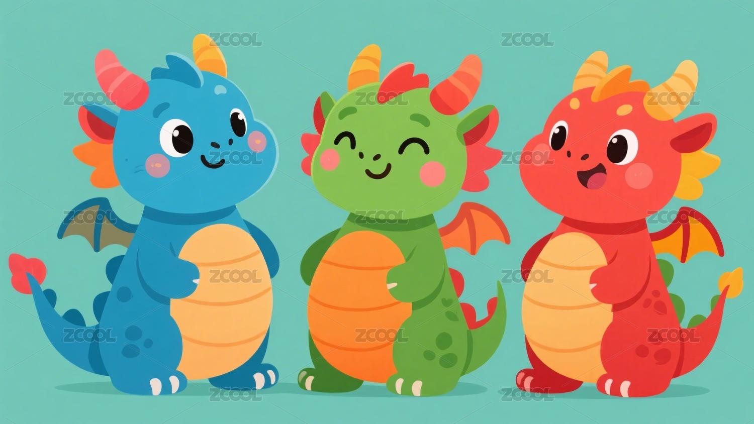 三只可爱小龙插画