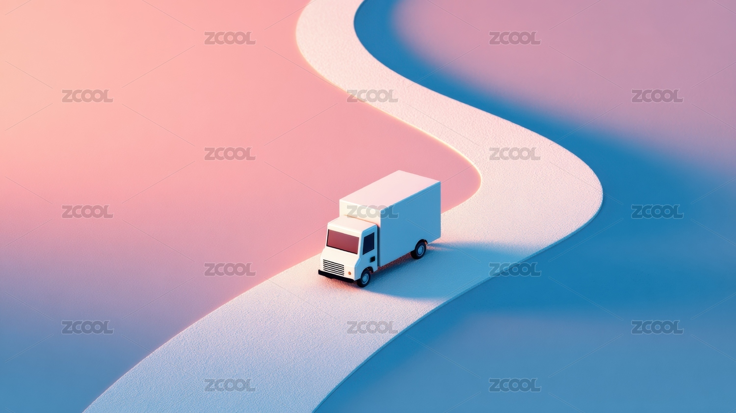 智能货车道路导航驾驶3D简洁场景插画
