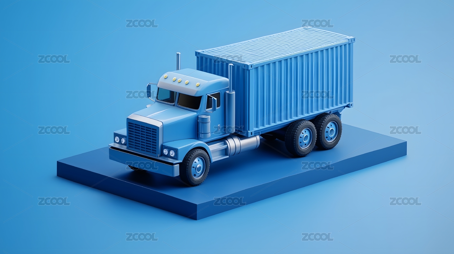 蓝色集装箱卡车3D渲染图